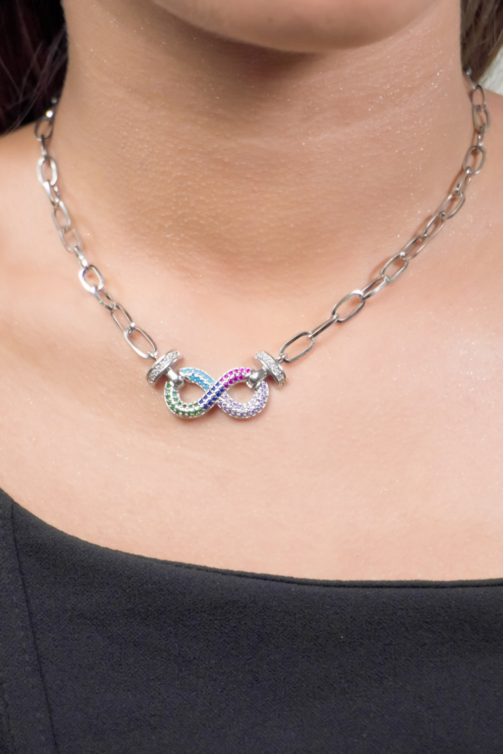 Nuestra hermosa gargantilla de acero inoxidable en forma de infinito es el accesorio perfecto para cualquier conjunto. El dije de infinito es muy llamativo y la pulsera es un gran complemento. La cadena mide 40 cm y tiene una extensión de 5CM, lo que la hace ajustable a la longitud que desee. La pulsera mide 16CM con una extensión de 5CM, también ajustable.