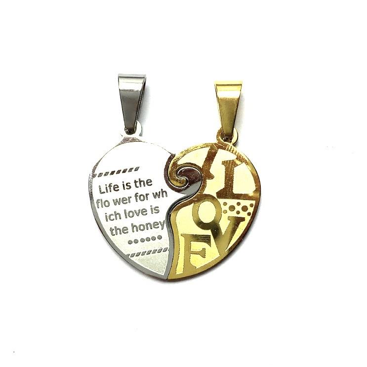 • Dije de corazón de Acero Inoxidable plateado con dorado.