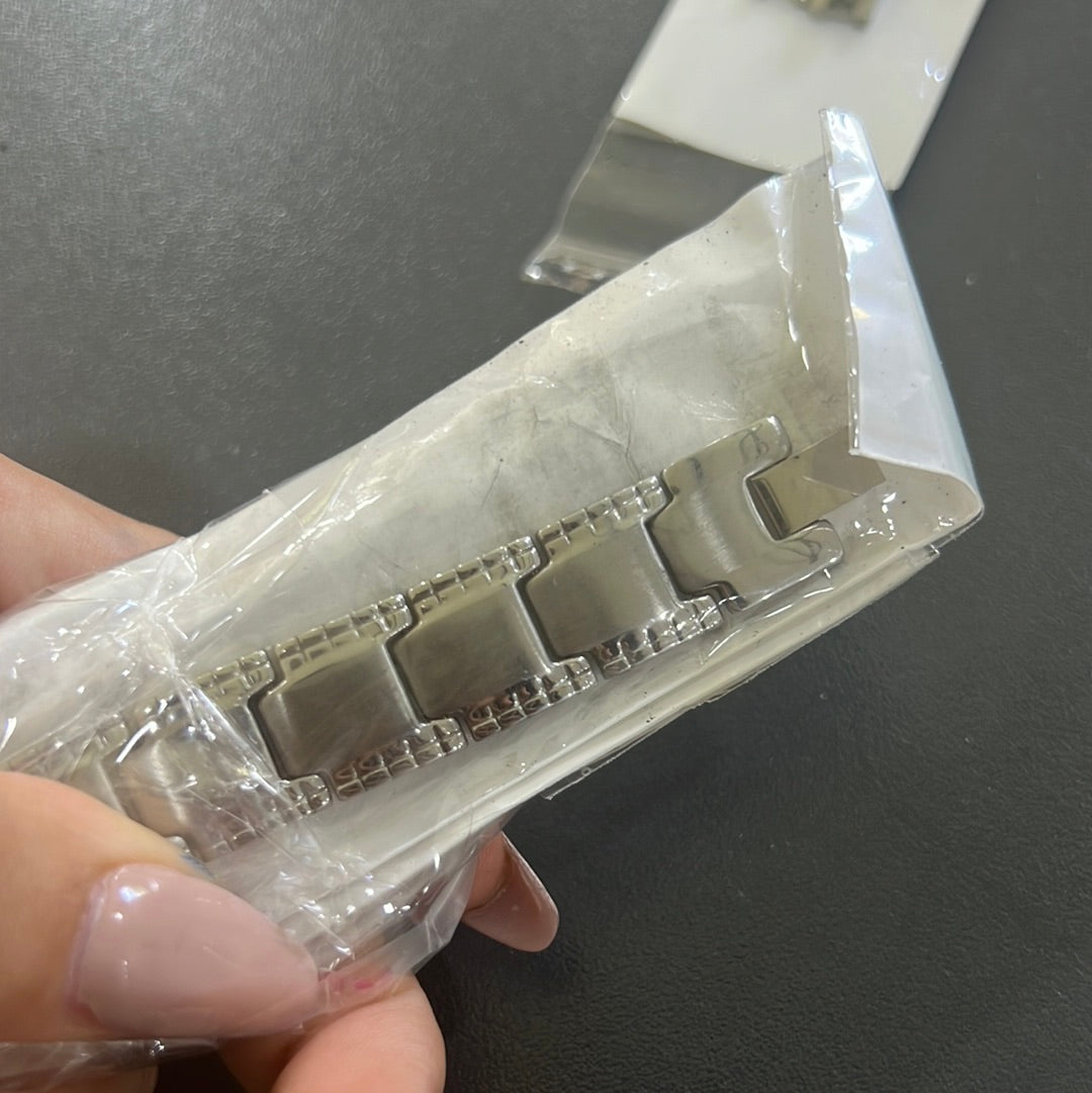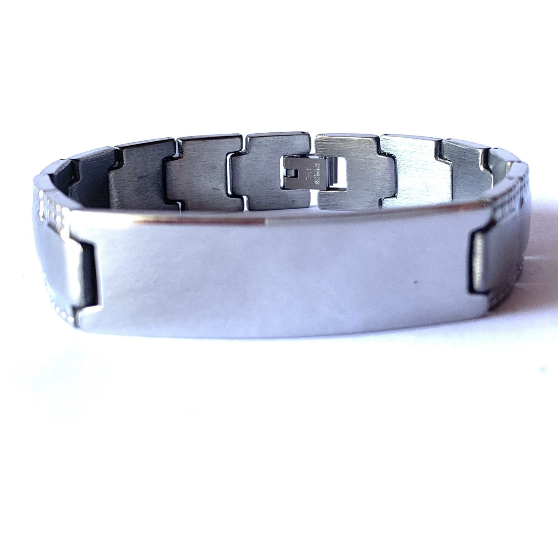 Pulsera plateada de acero inoxidable.