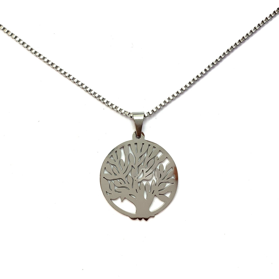 Dije de Acero Inoxidable Plateado del Árbol de la Vida.