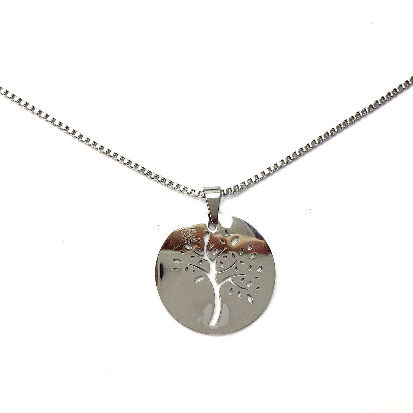Dije de Acero Inoxidable Plateado del Árbol de la Vida.