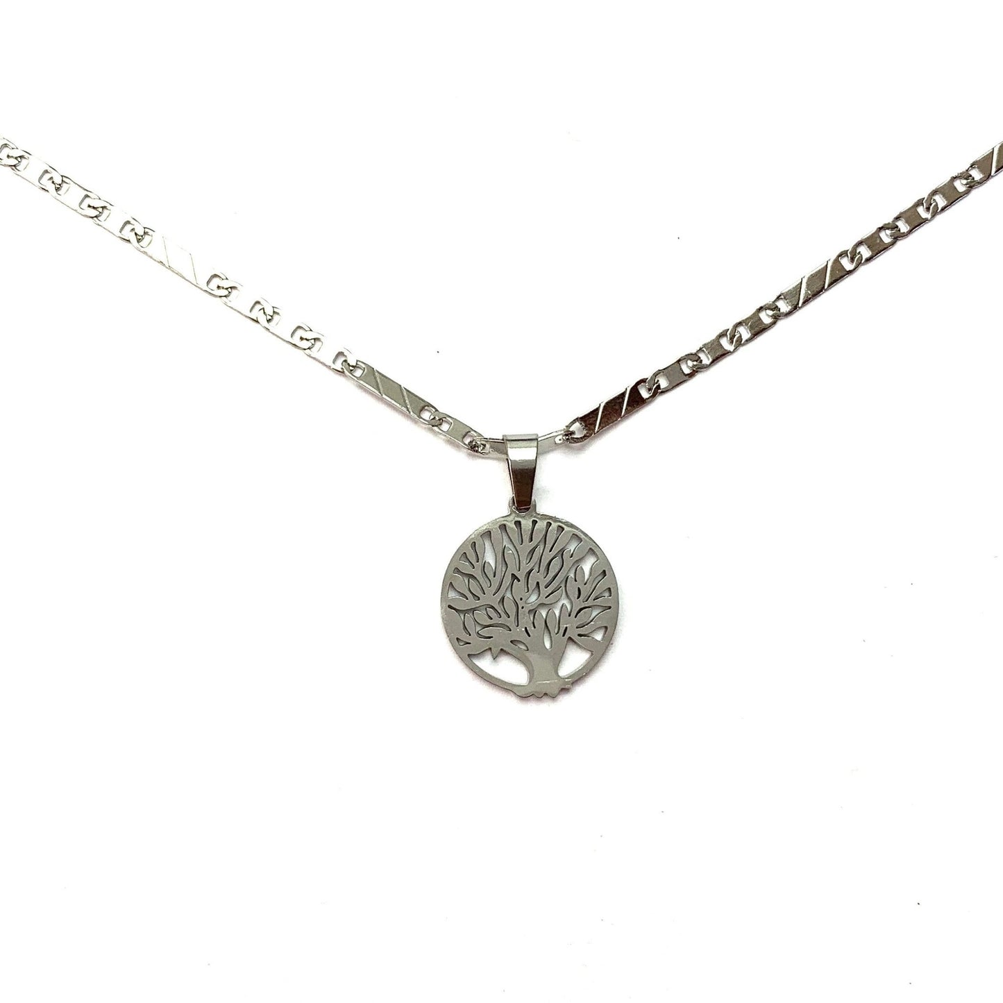 Dije plateado de Árbol de la Vida de acero inoxidable.