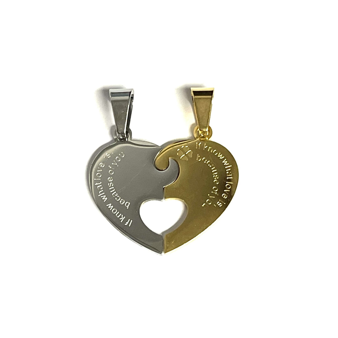 - Dije de corazón de Acero Inoxidable plateado con dorado.