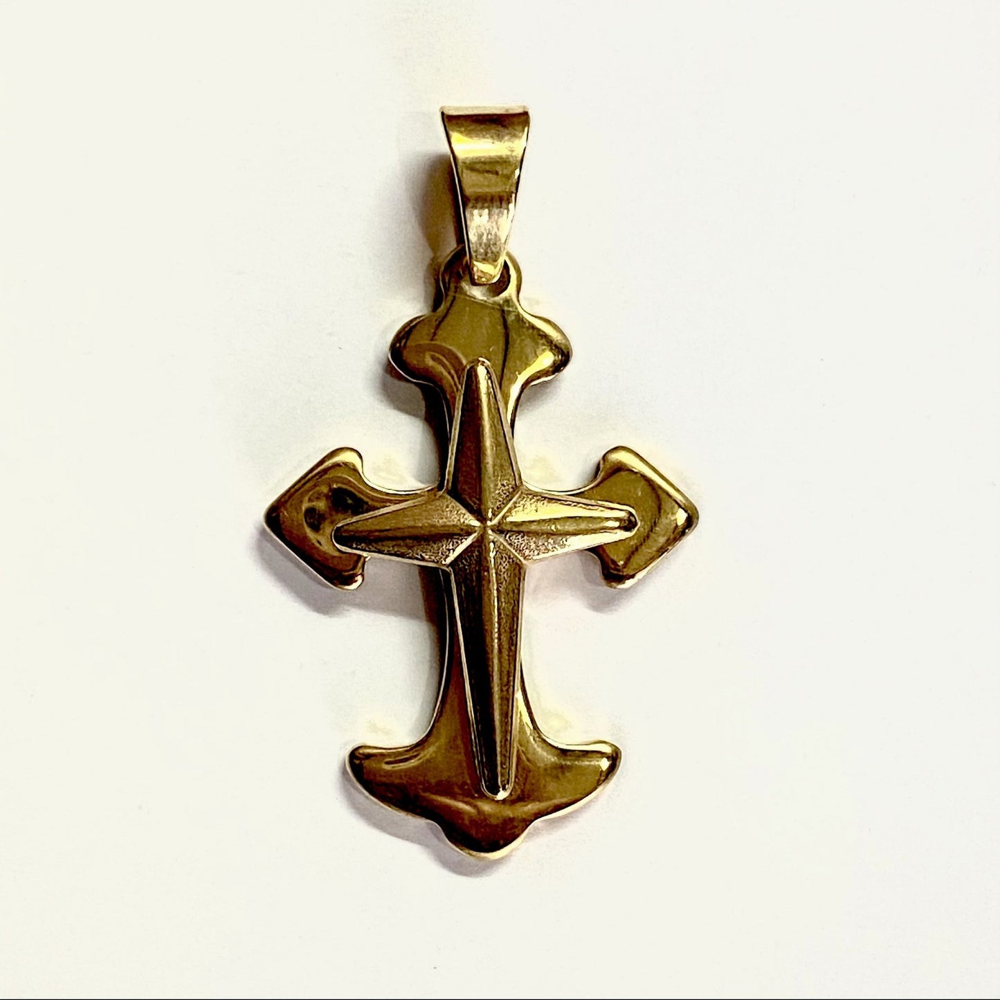 Dije de Crucifijo de Acero Inoxidable Dorado.