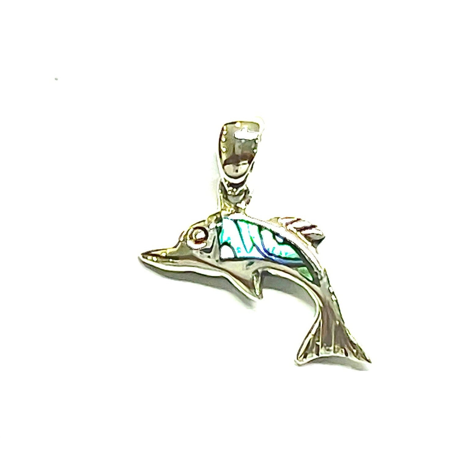 Dije de Plata 925 con Concha Abulón en forma de delfín. *no incluye cadena