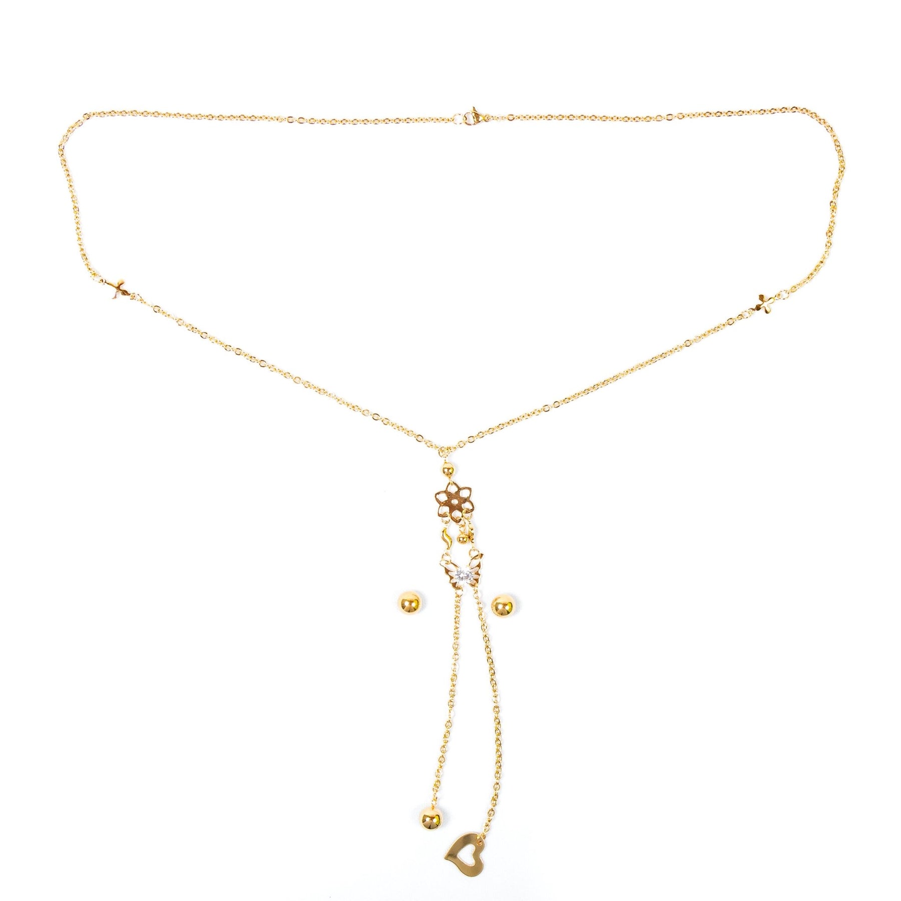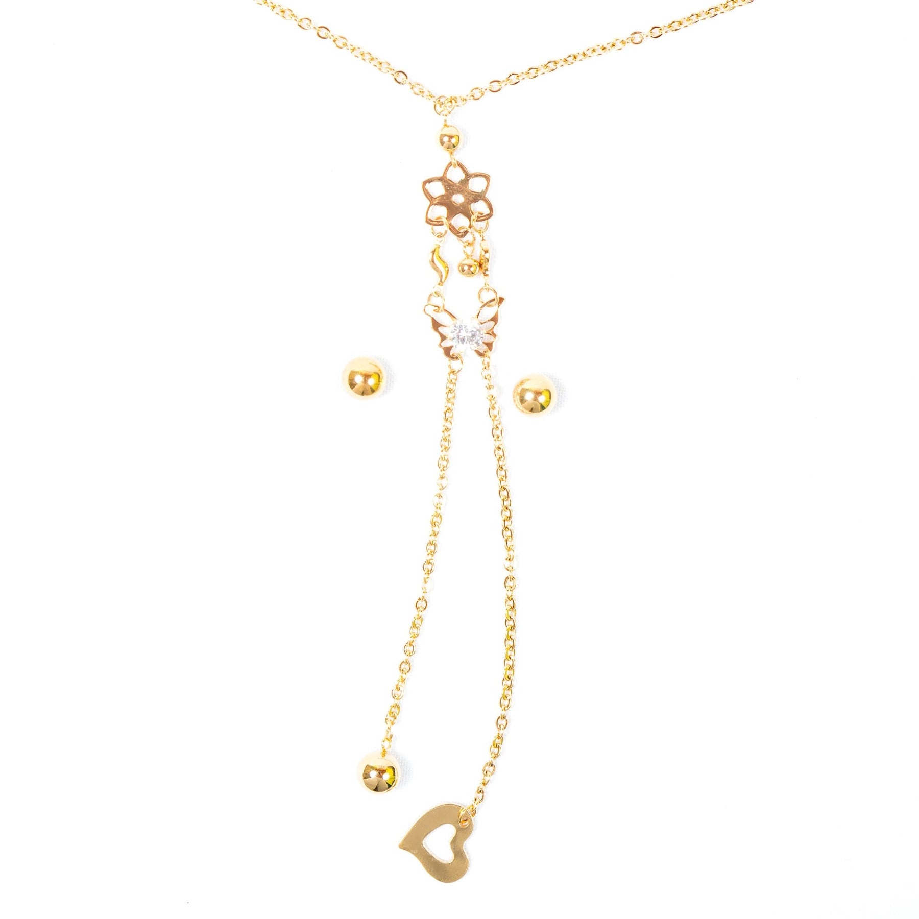 Cadena larga de acero inoxidable larga de 70cm, incluye aretes de bola.
