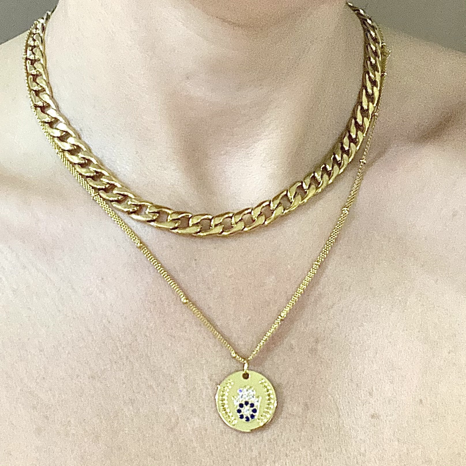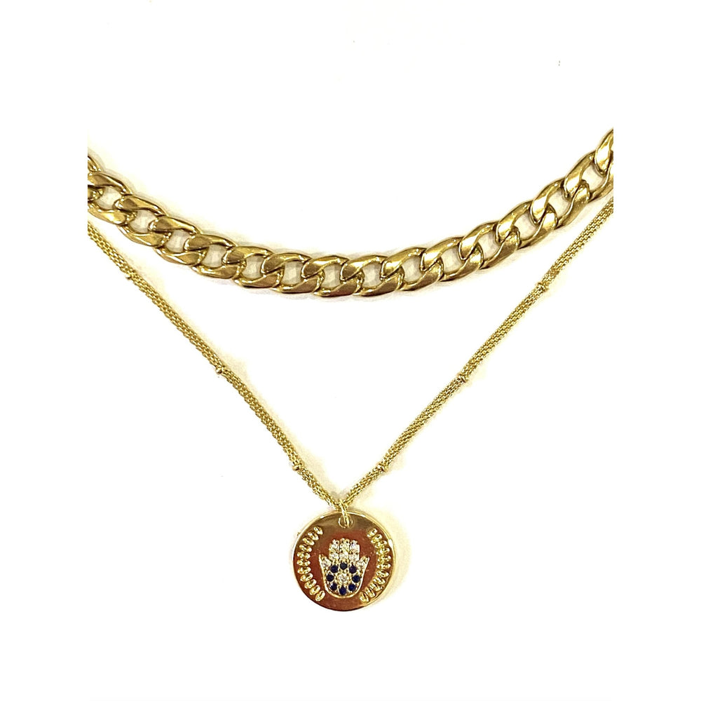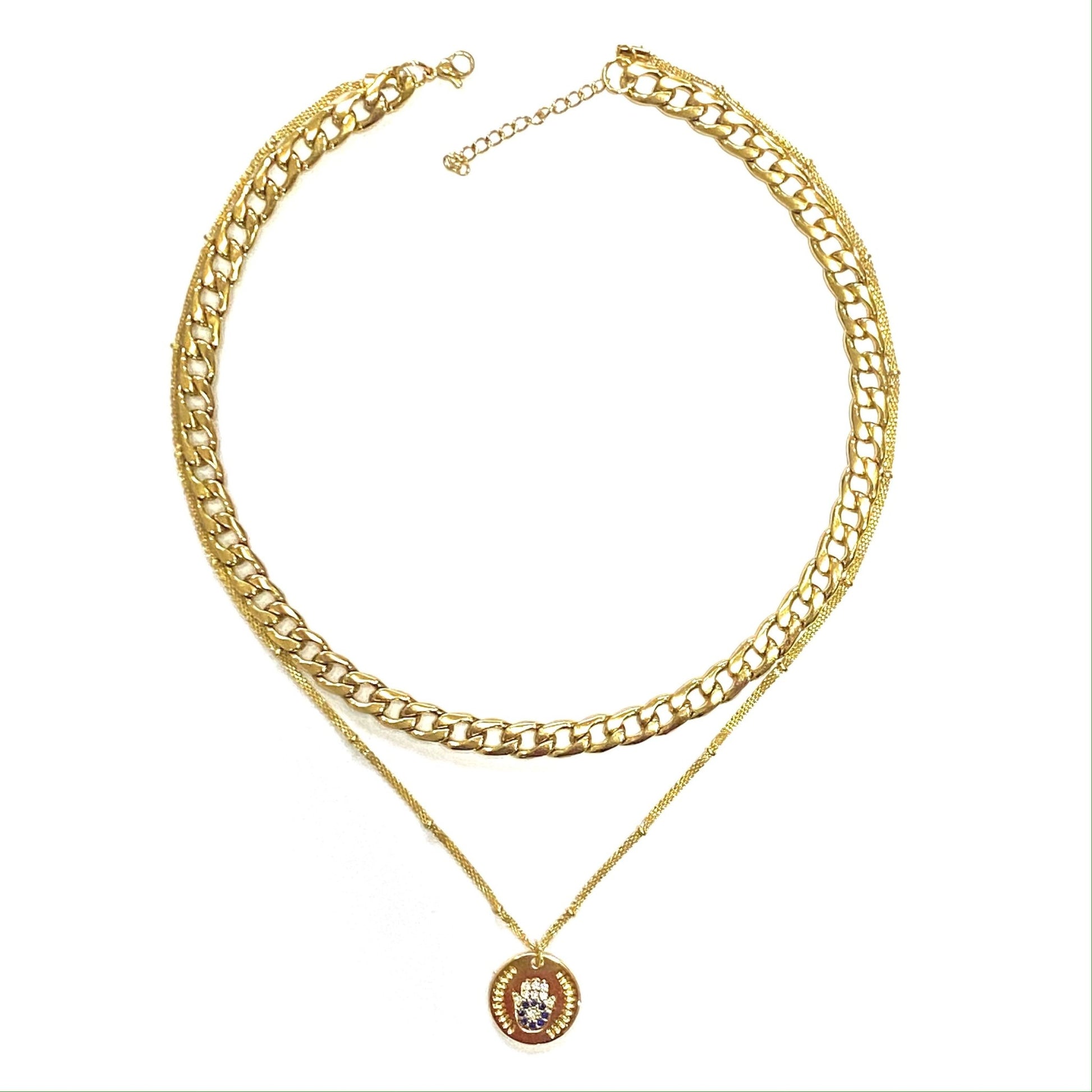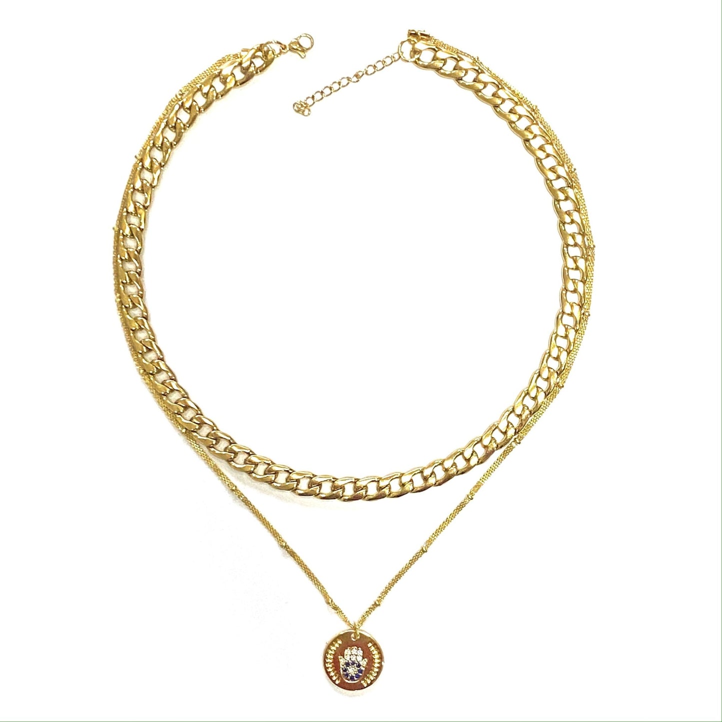 Collar Choker 2 en 1 Mano de Fatima Brillante | Acero Inoxidable