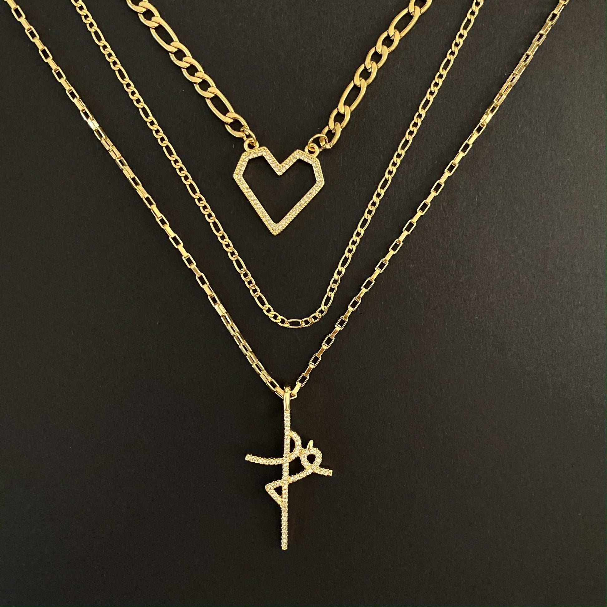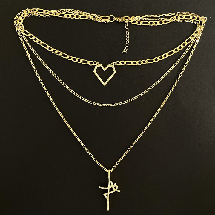Collar 3 en 1 con Corazón y Cruz Brillantes | Acero Inoxidable
