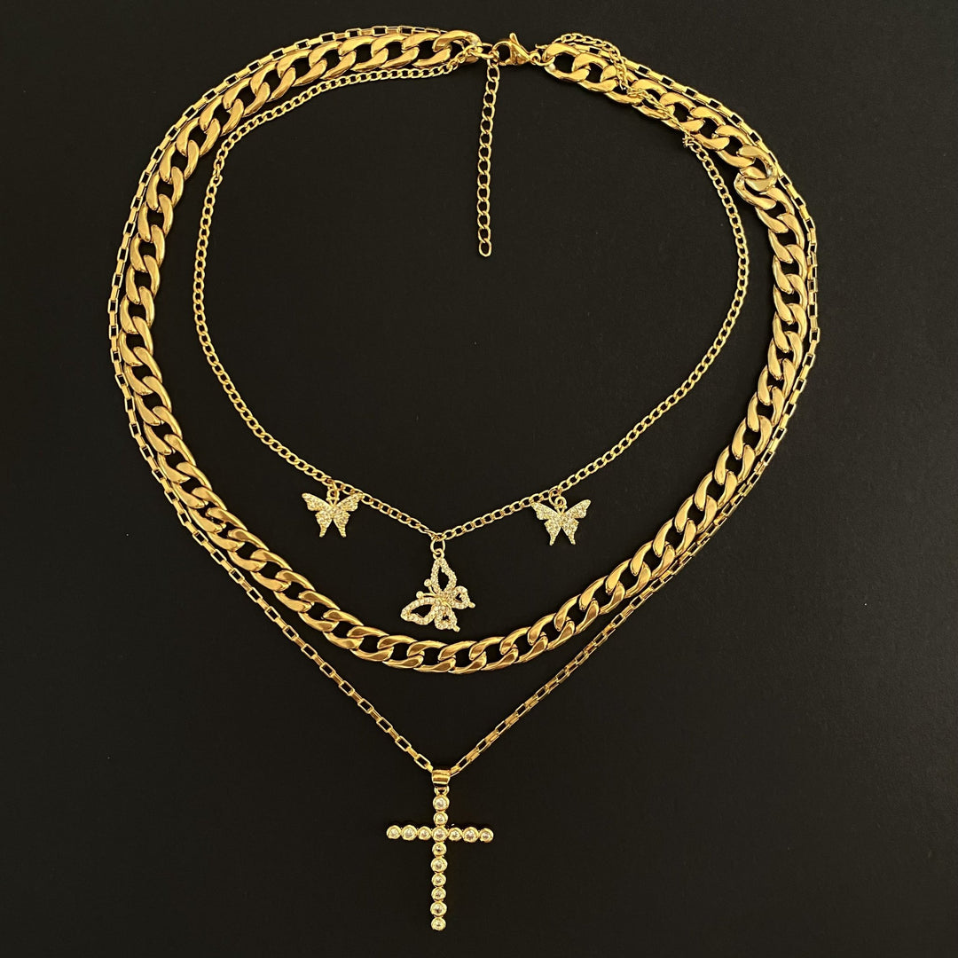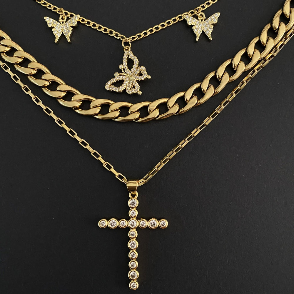 • Cadena #1 Choker 2MM Grumetta de 40 cm larga con tres mariposas.