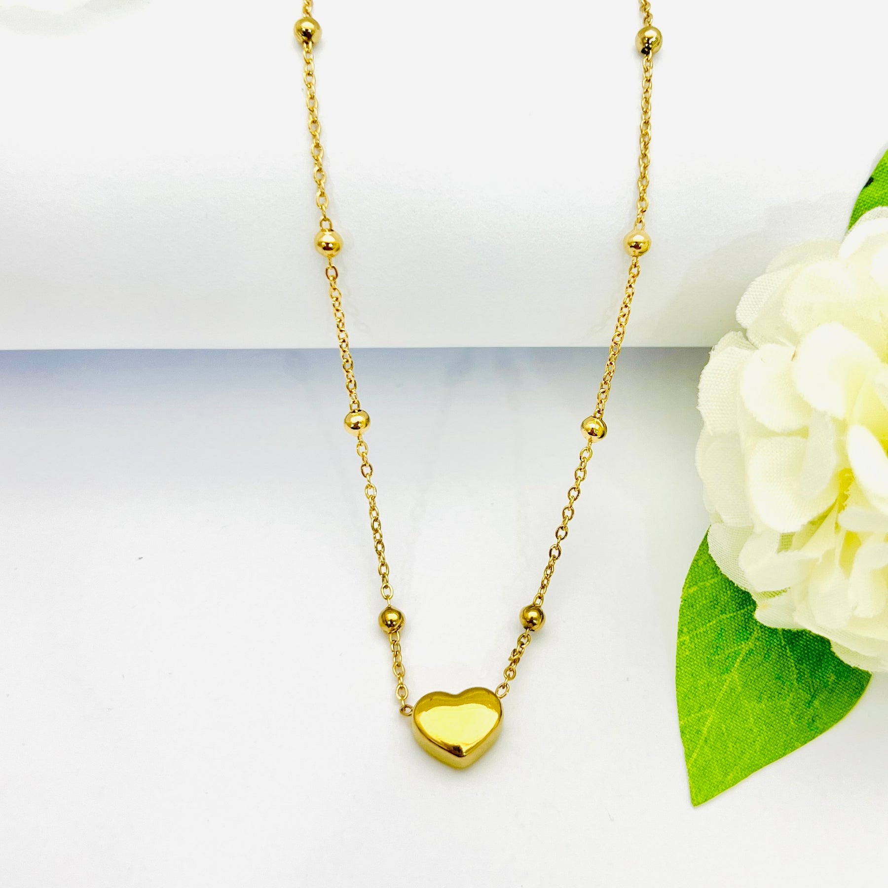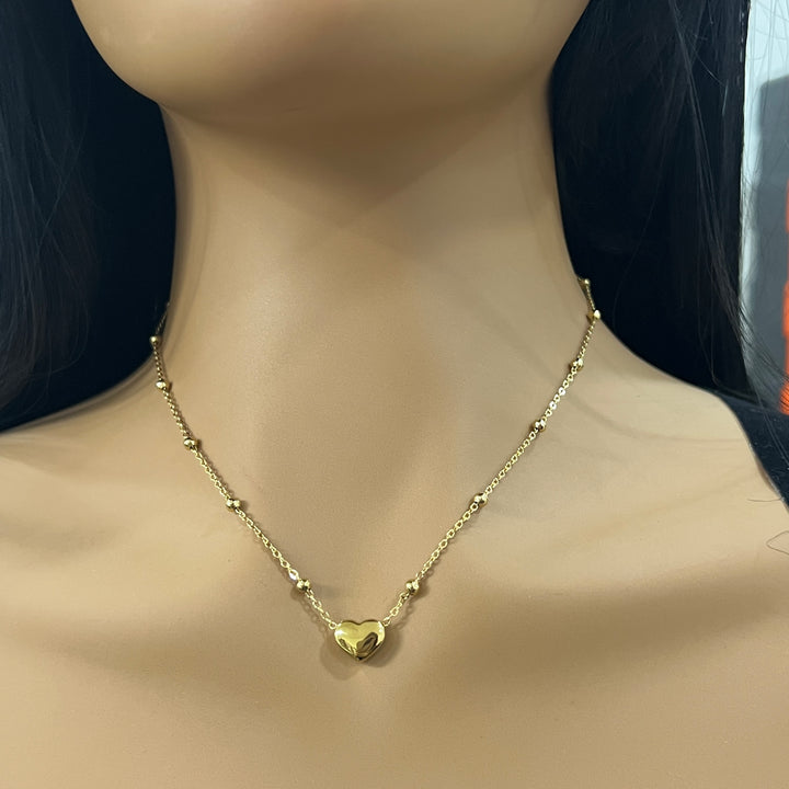 Gargantilla de Acero Brillo Corazón Dorada
