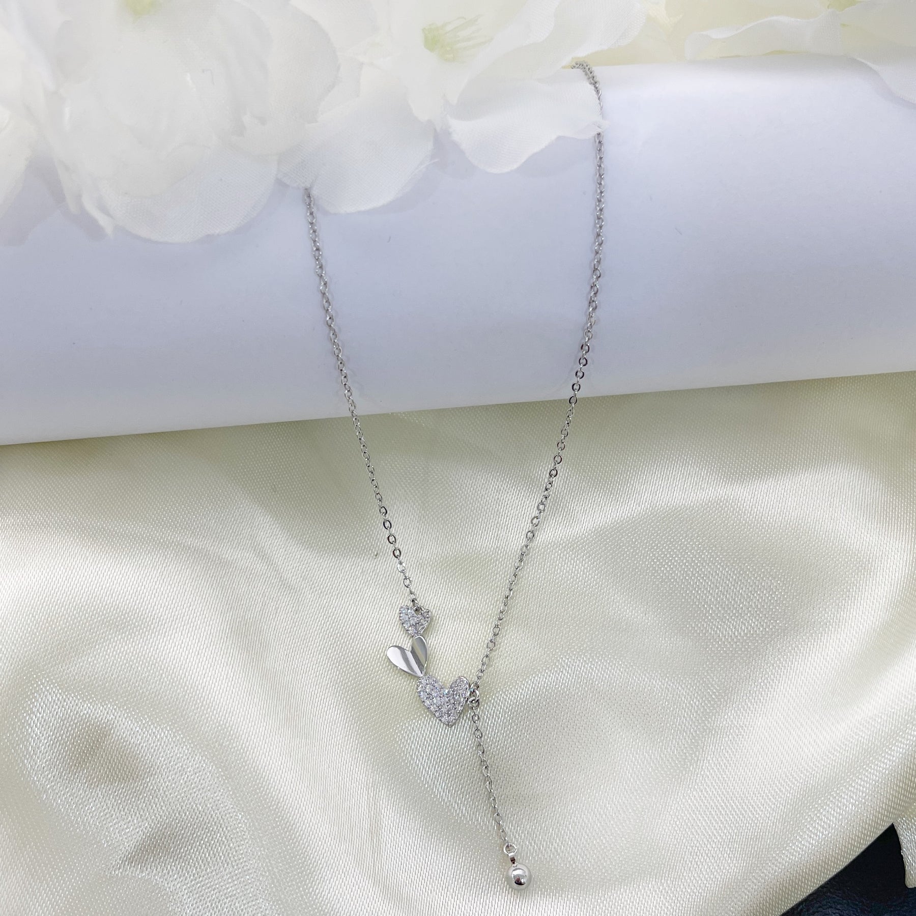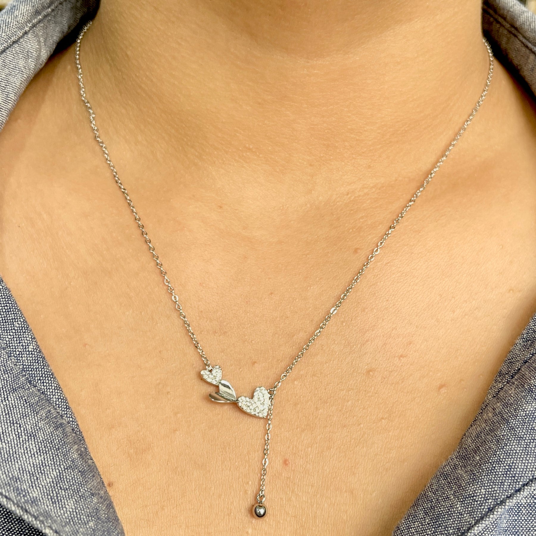 Gargantilla de Acero Trio Corazón Plateada