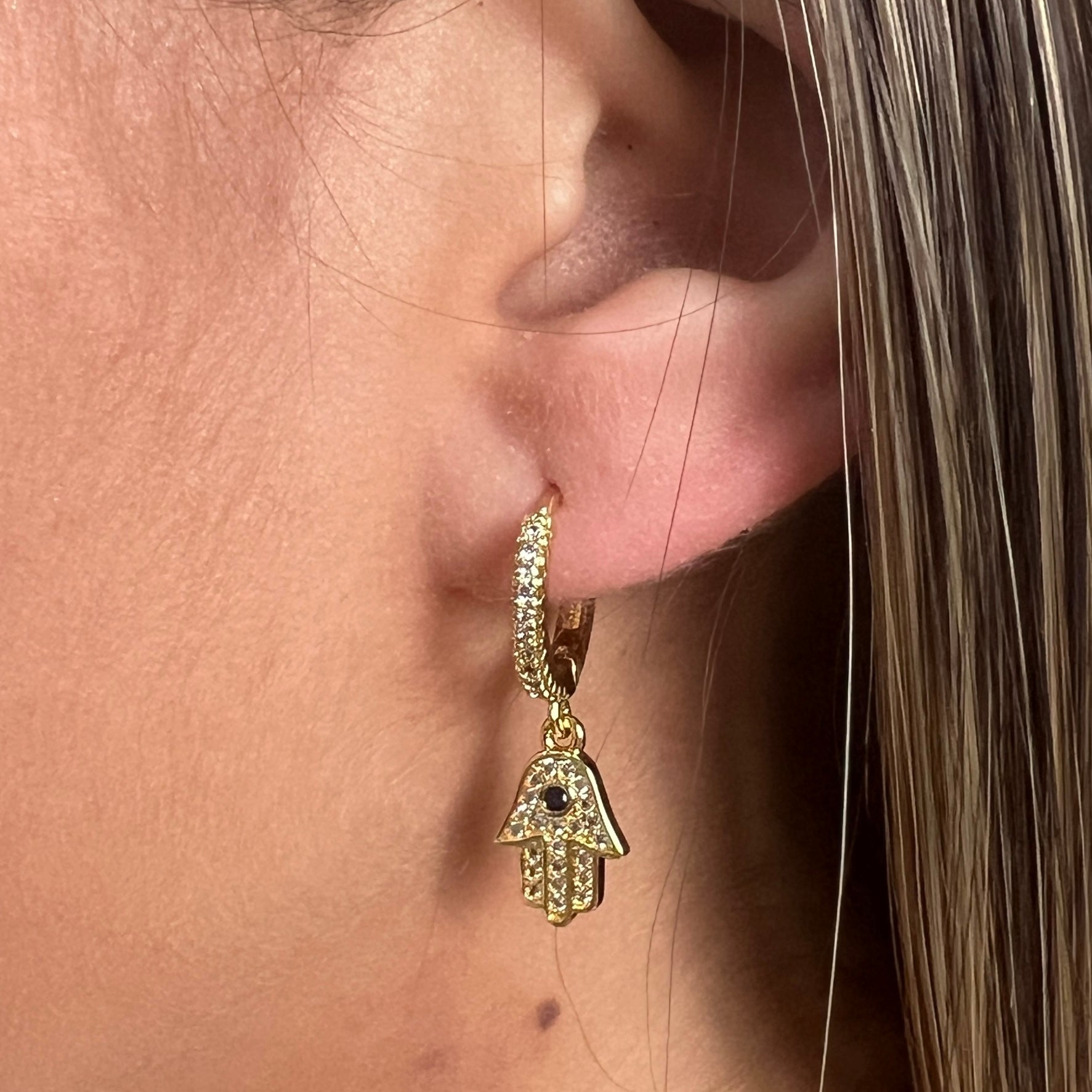• Aretes con Dije Colgante de Mano de Fatima
