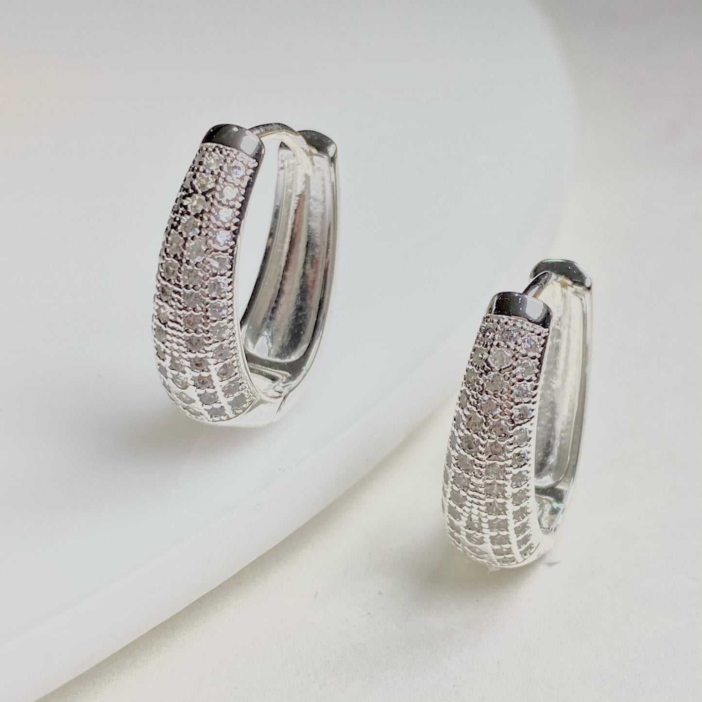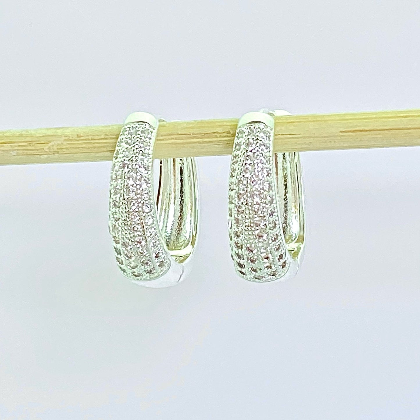 Aretes tipo huggie de acero inoxidable con aleación y zirconias color plateados.