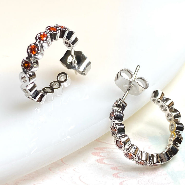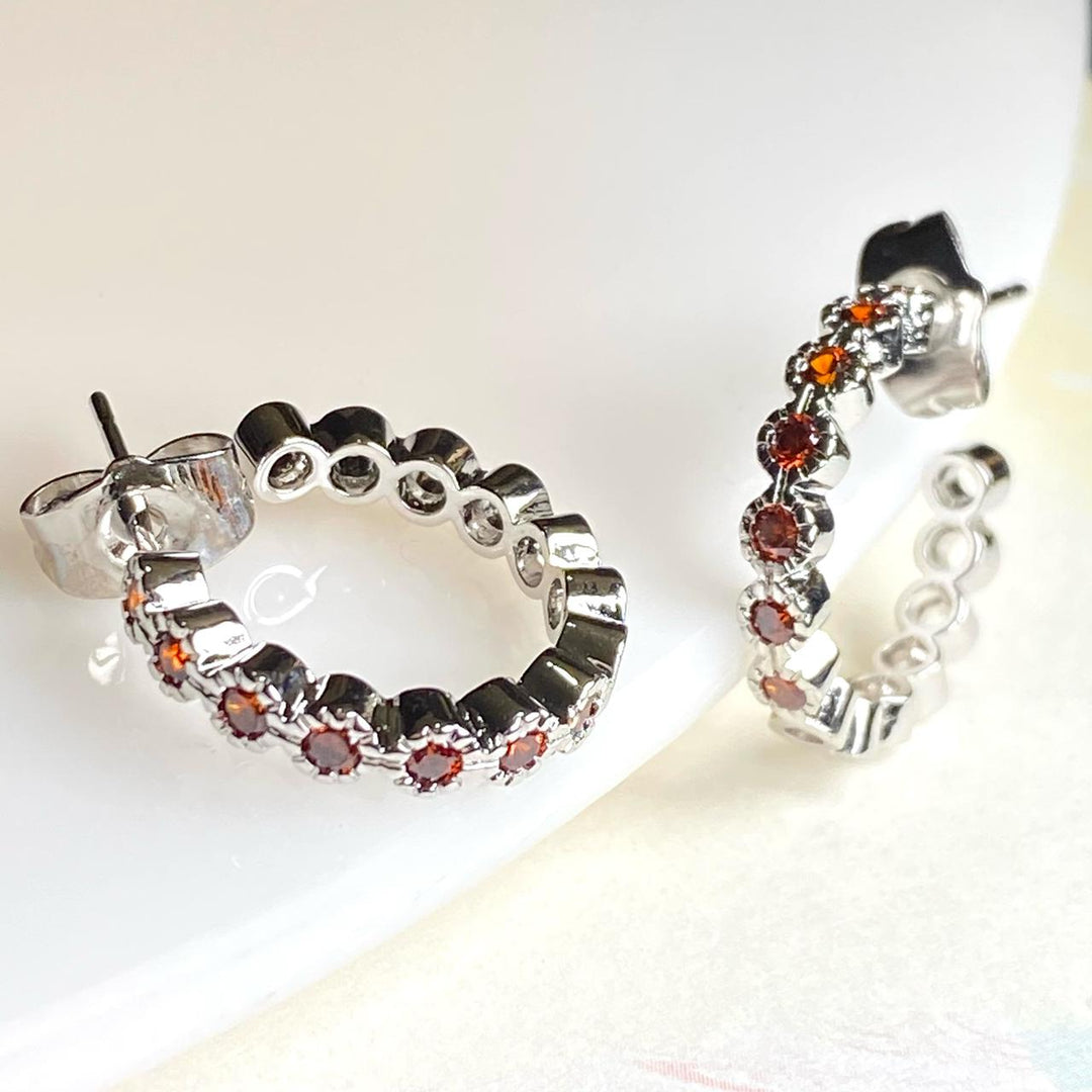 Aretes tipo huggie de acero inoxidable con aleación y zirconias.