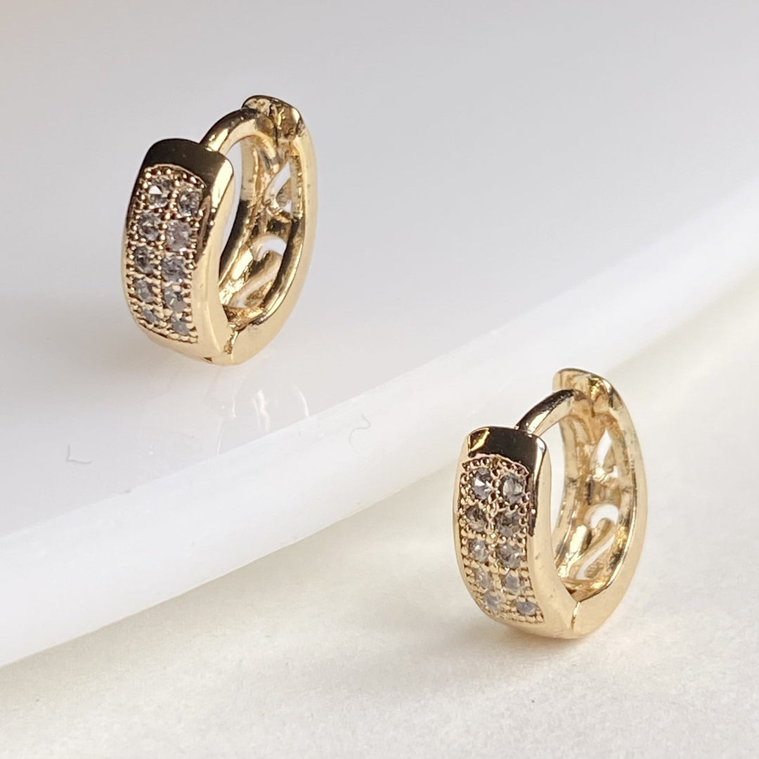 Aretes tipo huggie de acero inoxidable con aleación y zirconias.