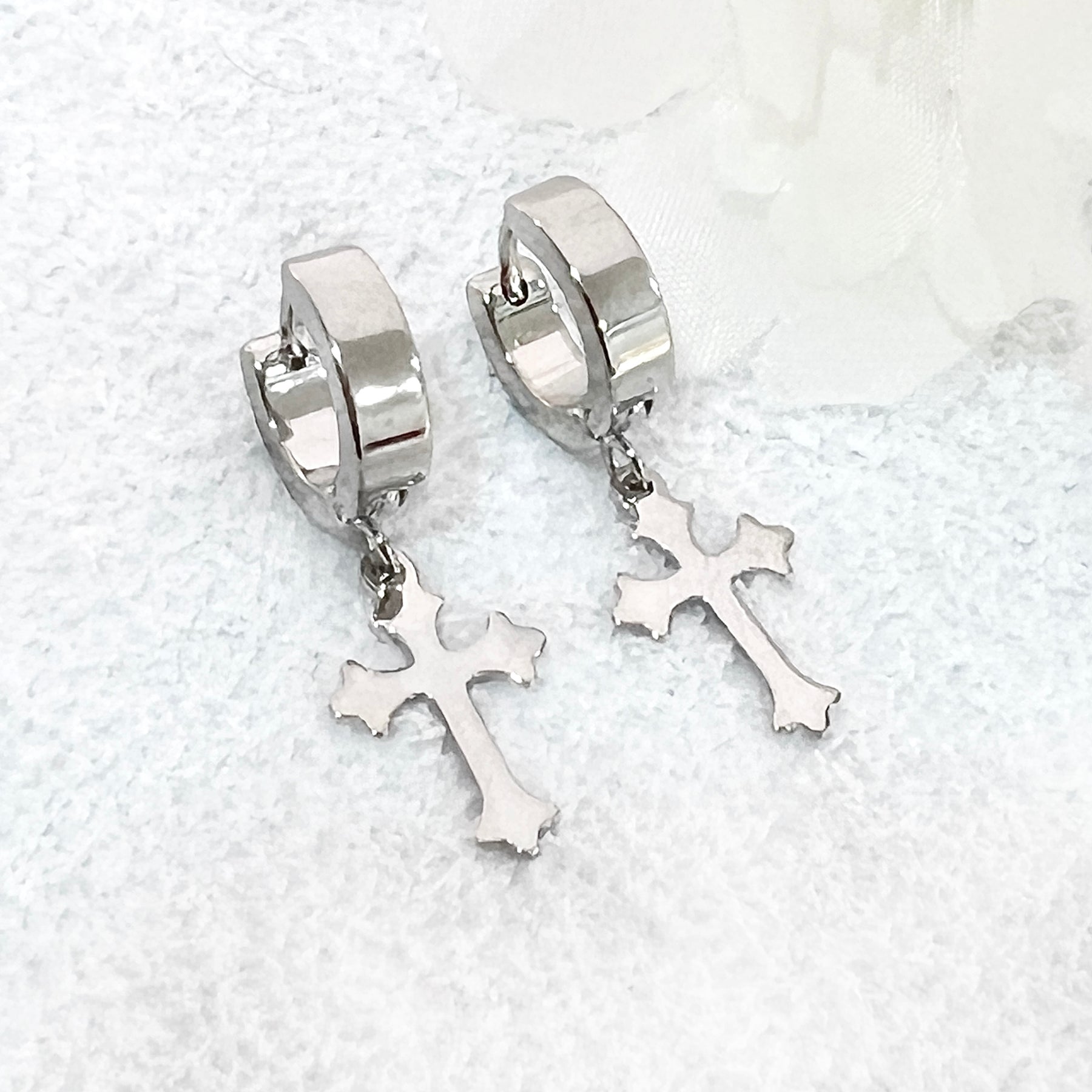 Huggies de Acero ✝️ Plateada Bordeada