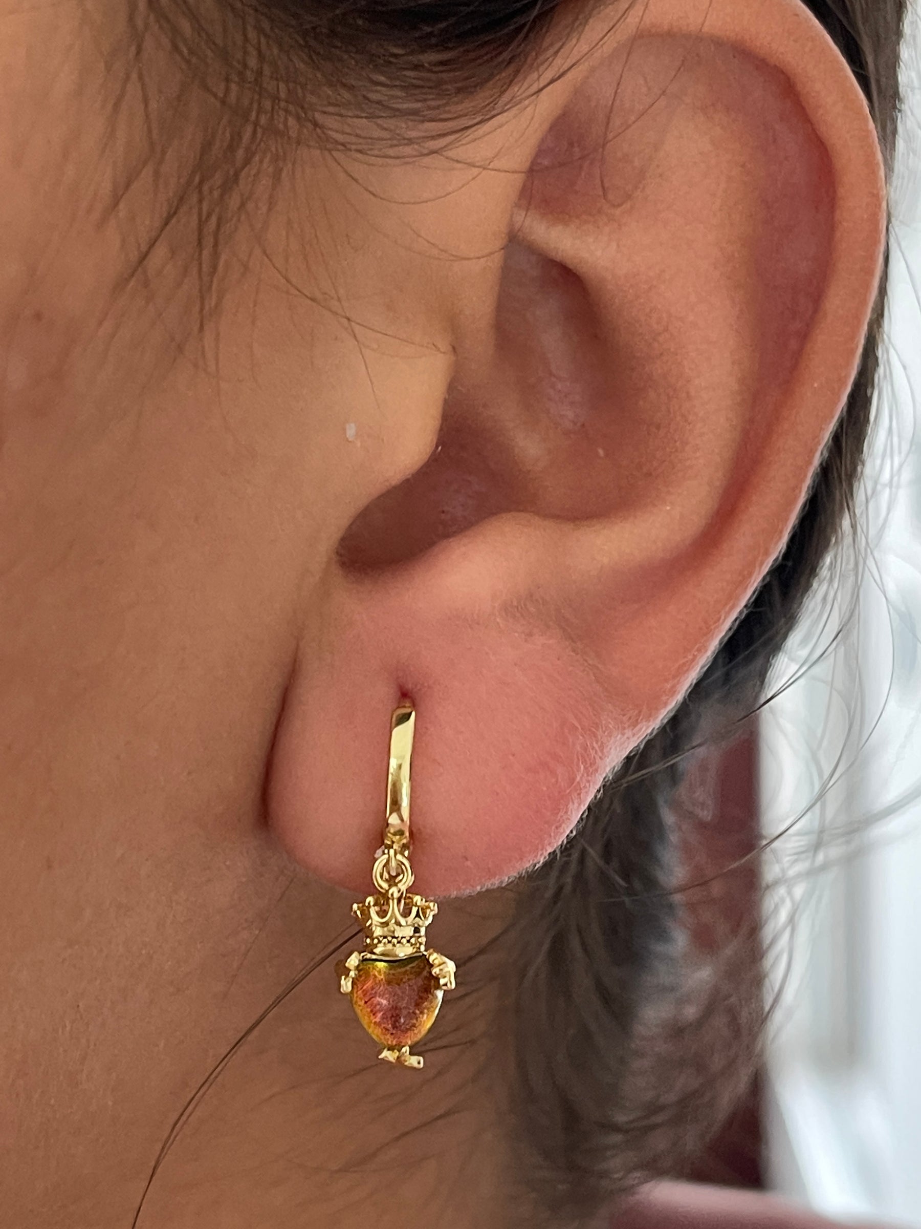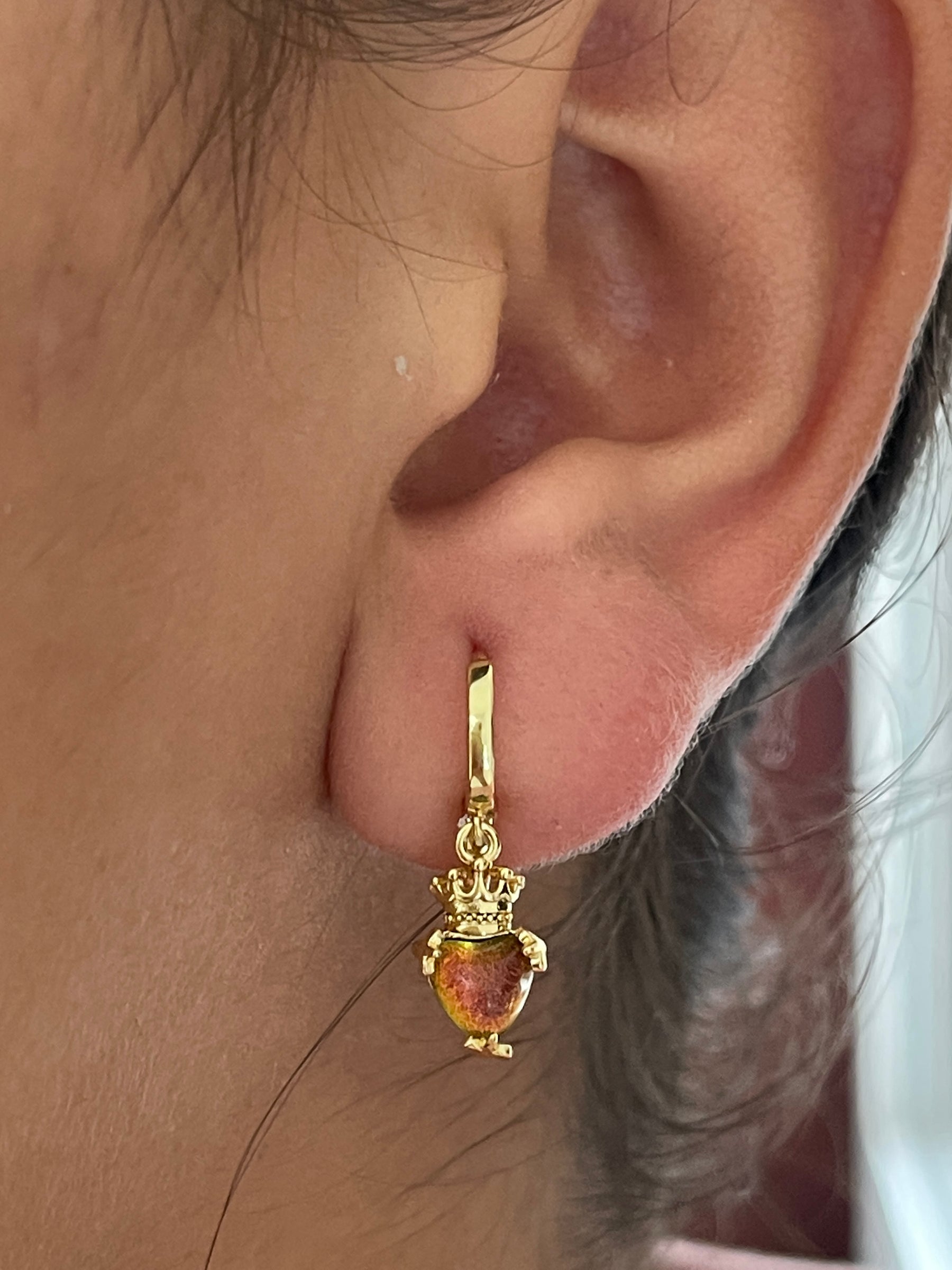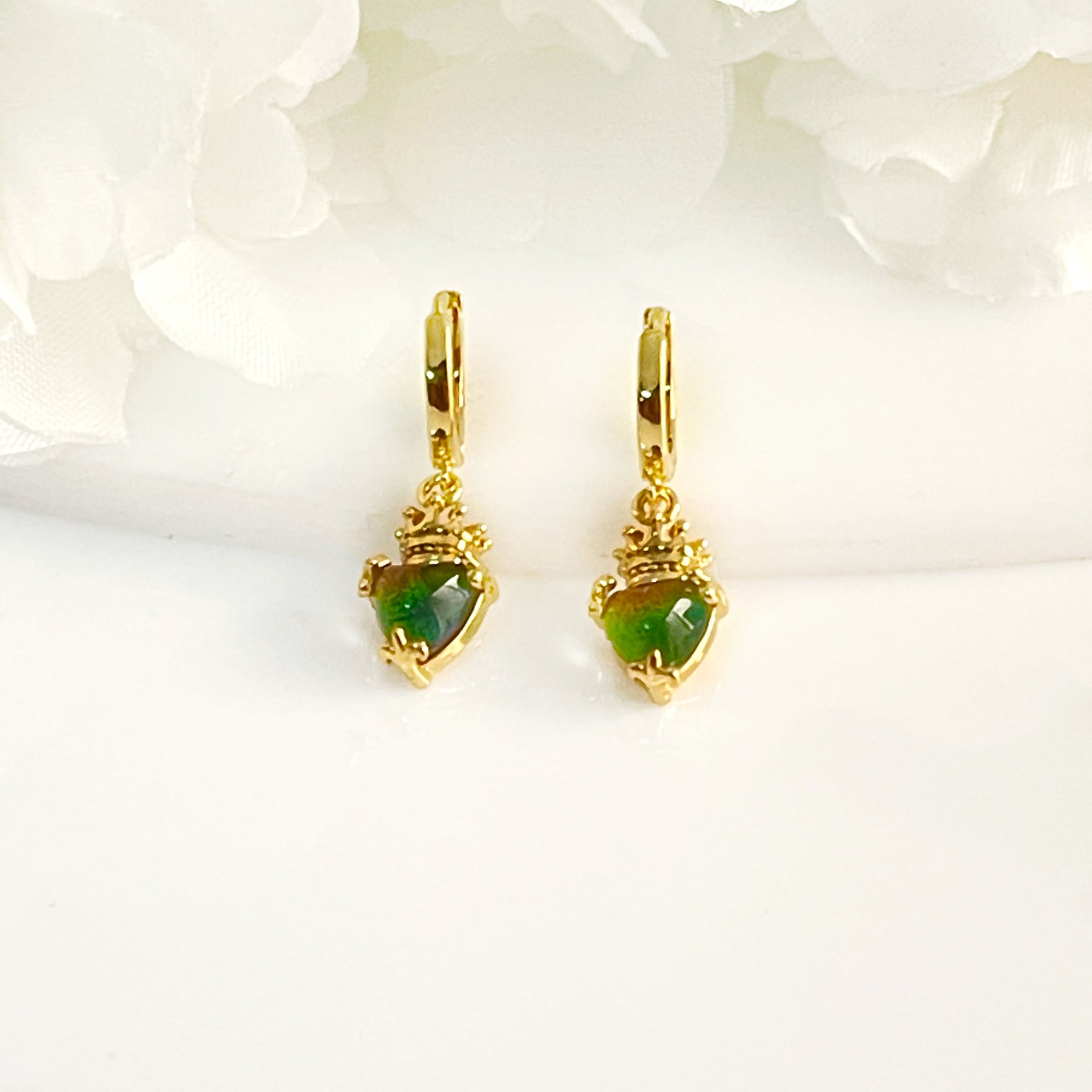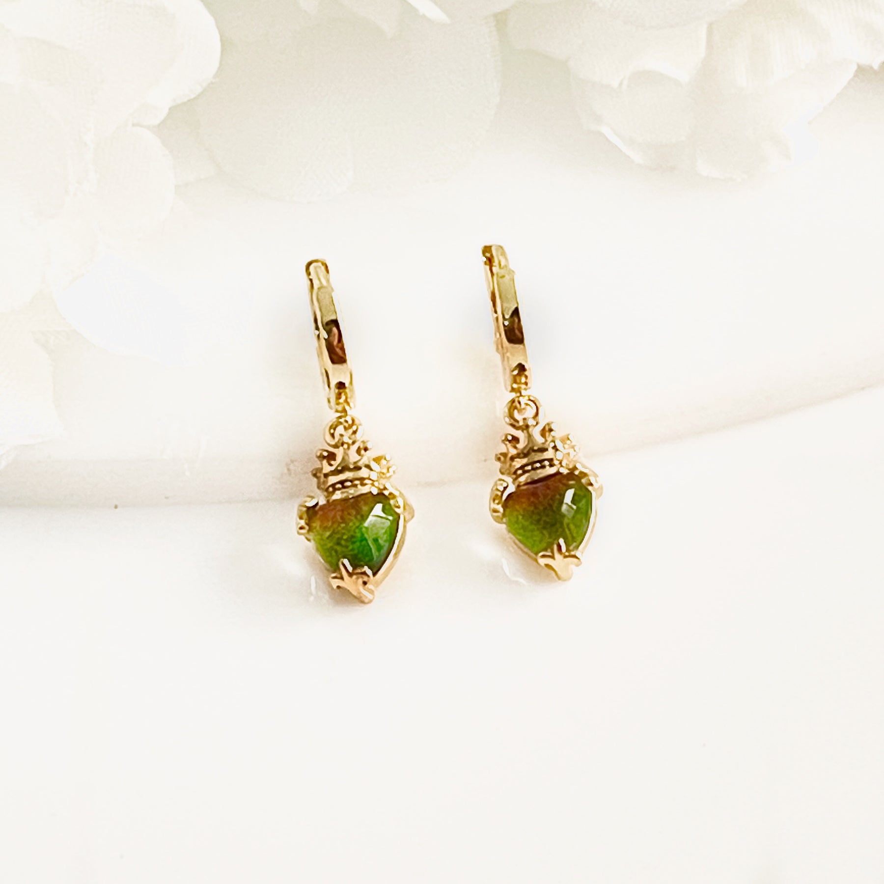 Huggies de Acero☘️👑Corona Roja con verde | Nicola Joyería