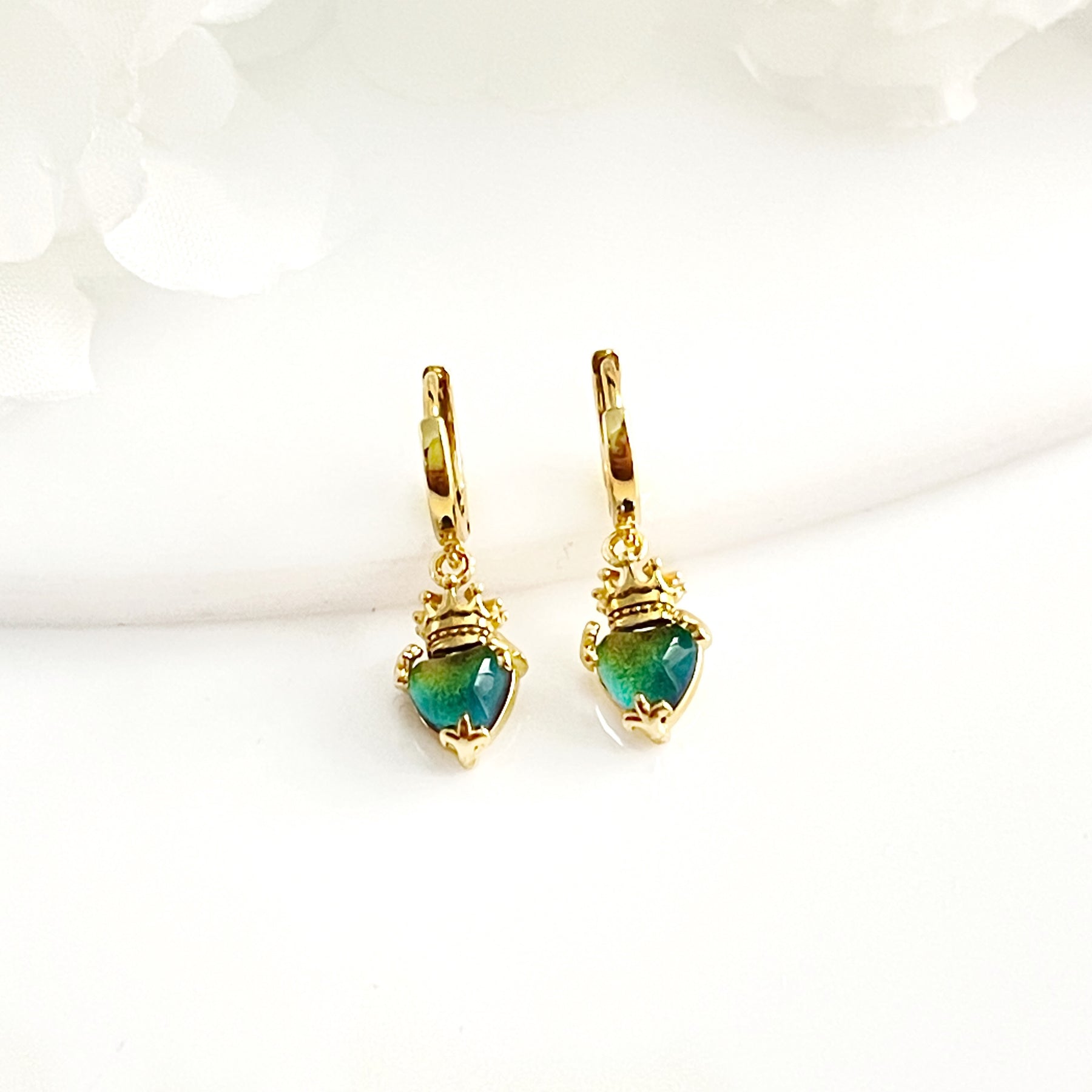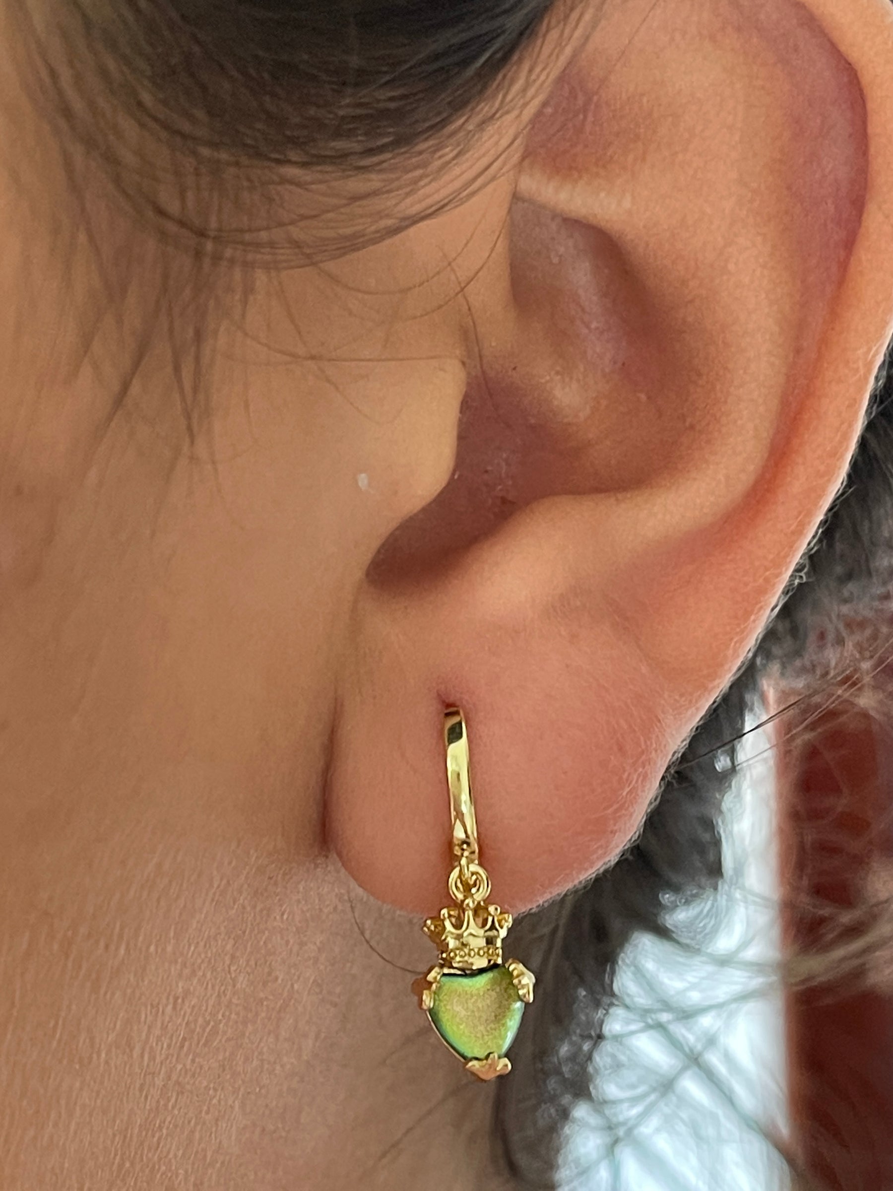 Huggies de Acero☘️👑Corona verde| Nicola Joyería