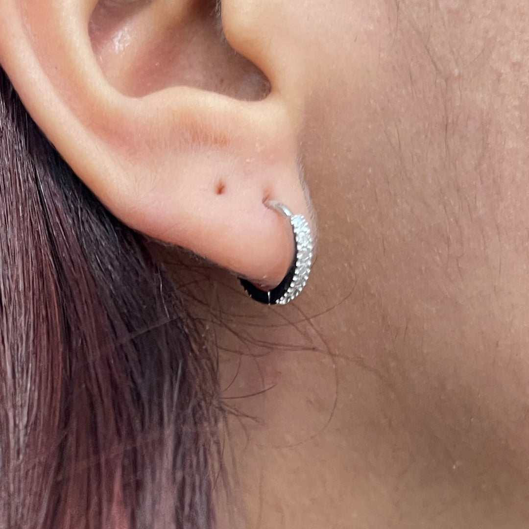 Argollas de Plata 925 con piedras circonias blancas doble cara