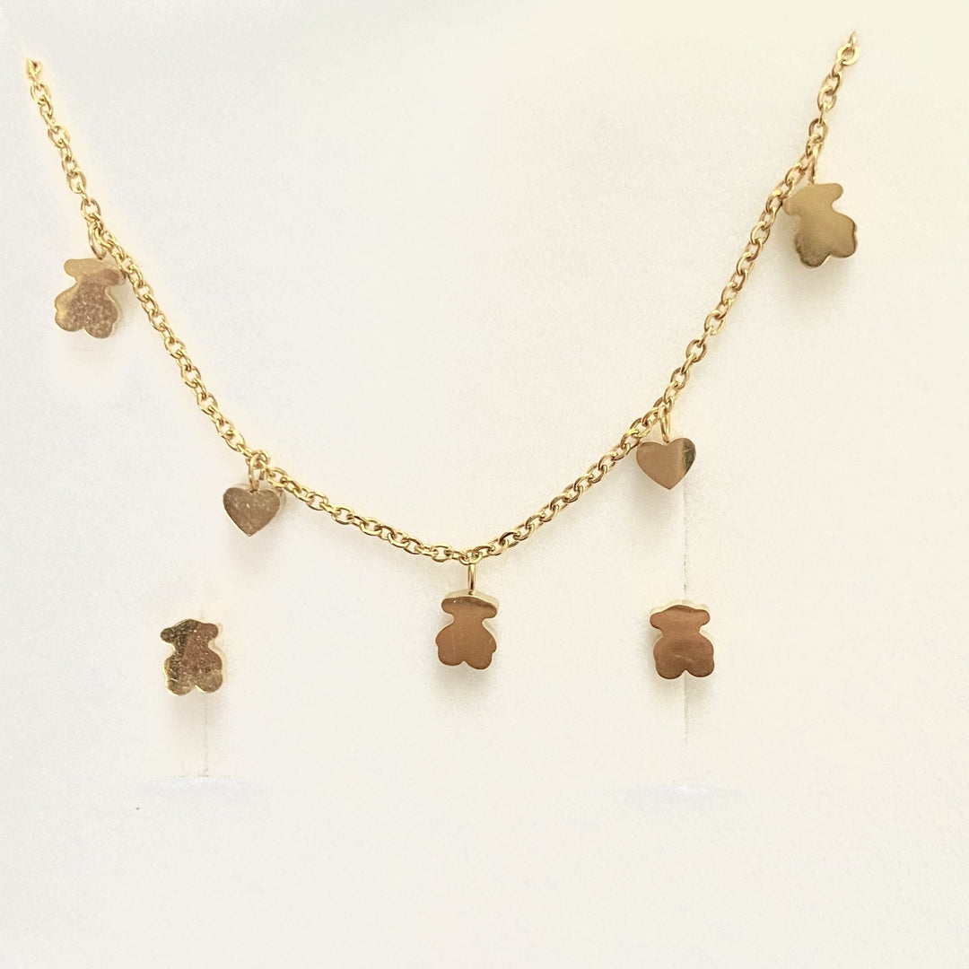 Juego de Aretes y Dije de Acero Inoxidable Dorado