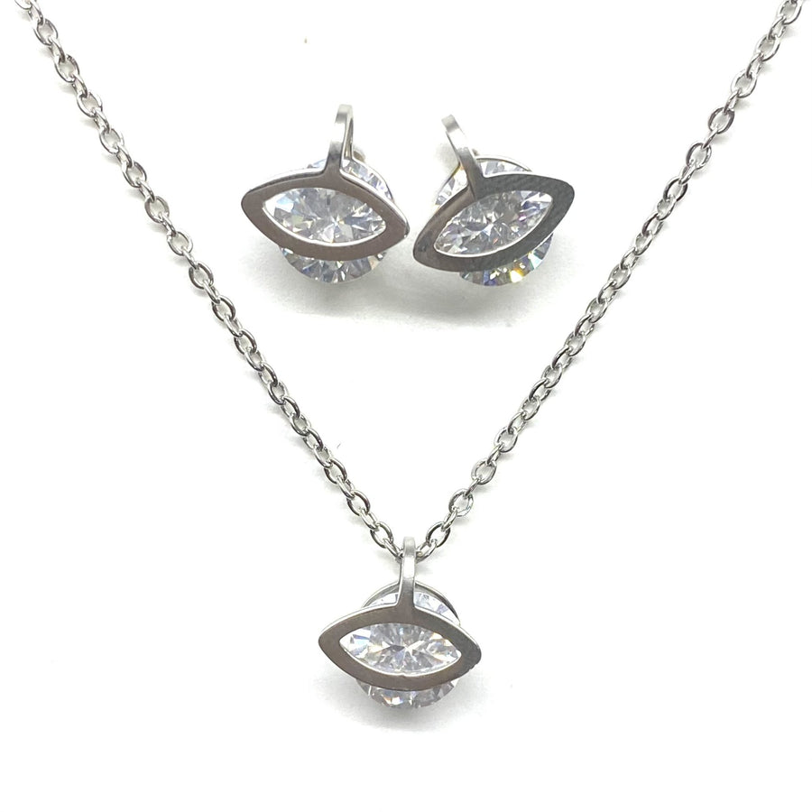 Aretes, dije y cadena de acero Inoxidable plateado