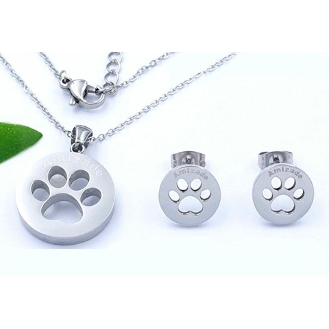 Juego de acero inoxidable plateado con dije de pata de parro.