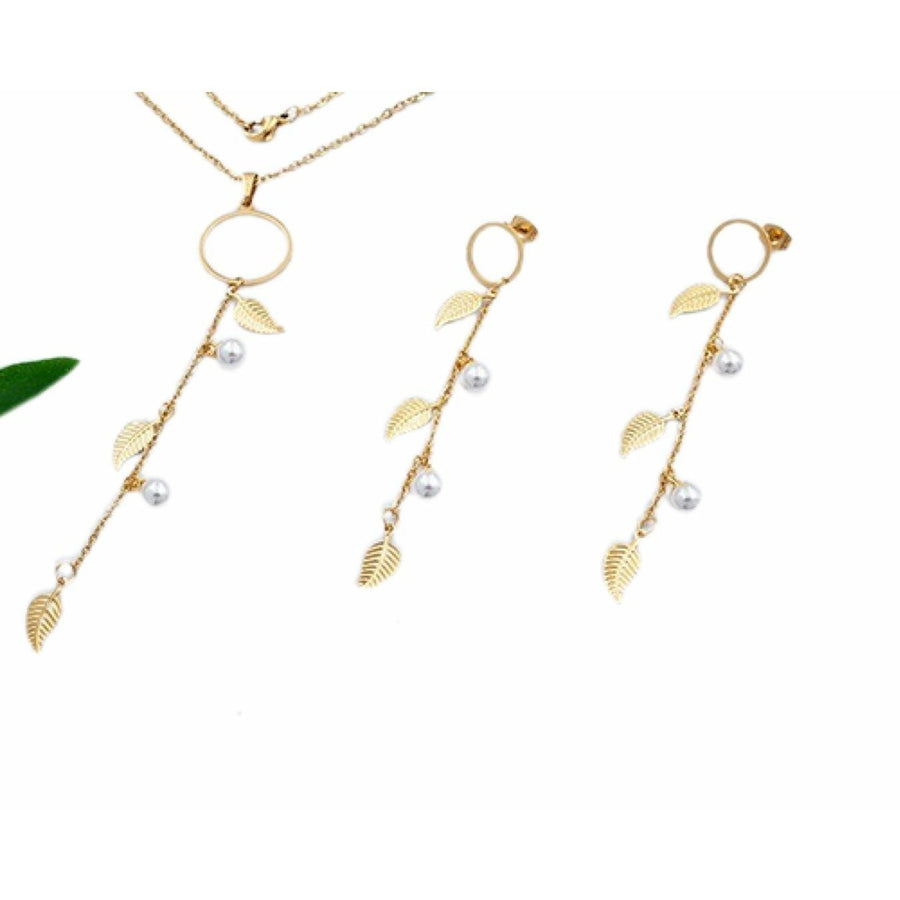 Juego de acero inoxidable dorado con dijes de hojas.