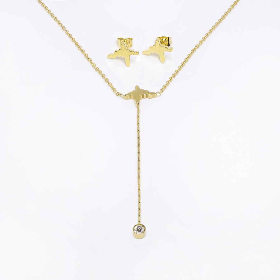 Aretes, dije y cadena de acero inoxidable dorado en forma de latidos de corazón.