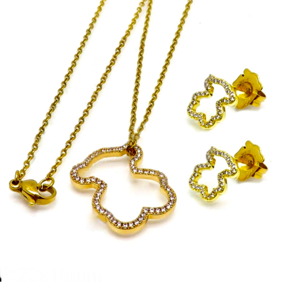 Juego de Acero TOÜS Dorados Circonias Huecos 🐻