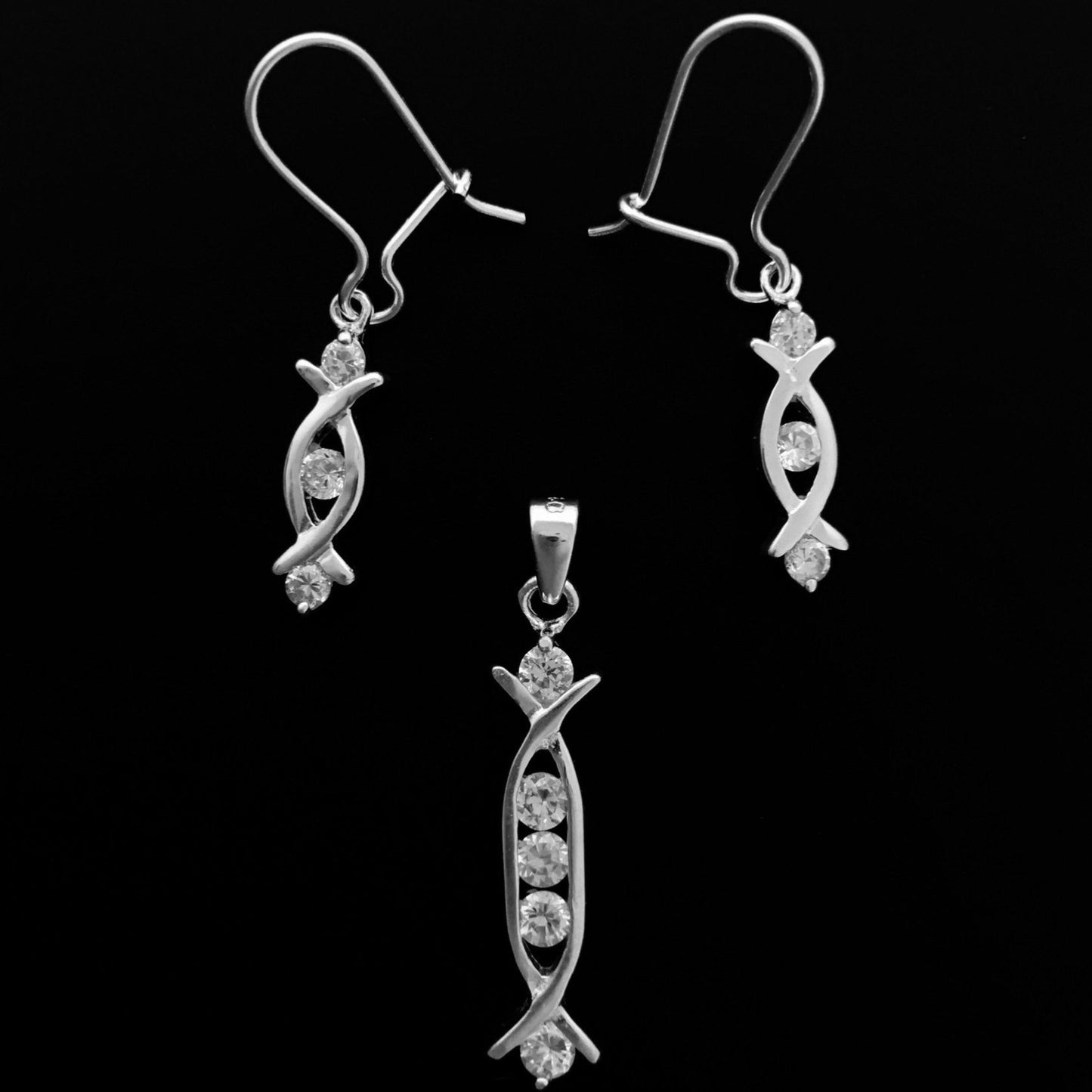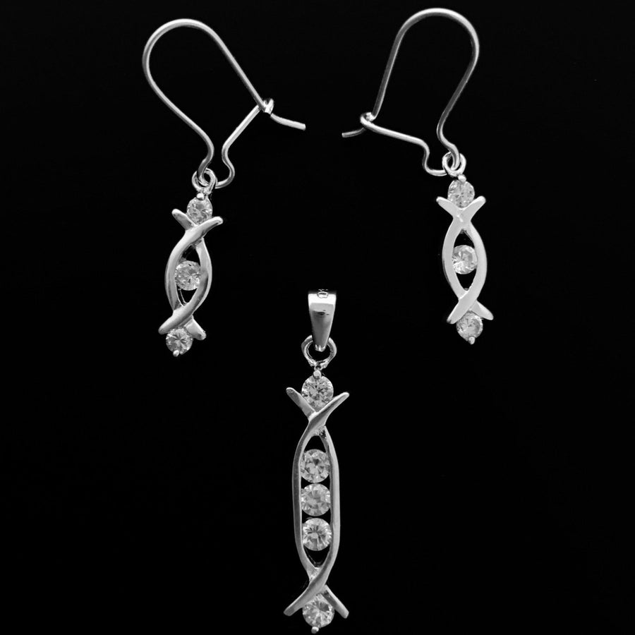Juego de aretes y dije de Plata 925 con piedras circonias cúbicas