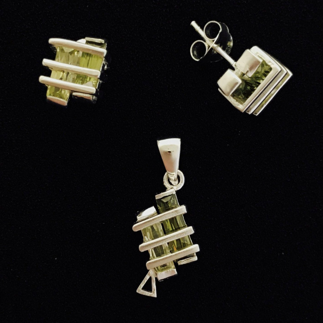 Juego de aretes y dije de Plata 925 con piedras circonias cúbicas