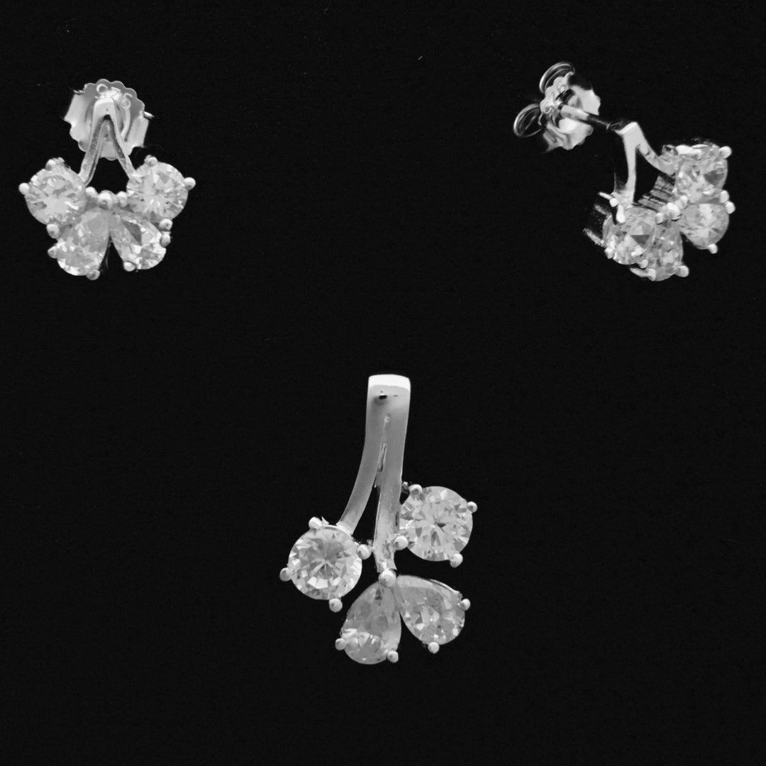 Juego de aretes y dije de Plata 925 con piedras circonias cúbicas