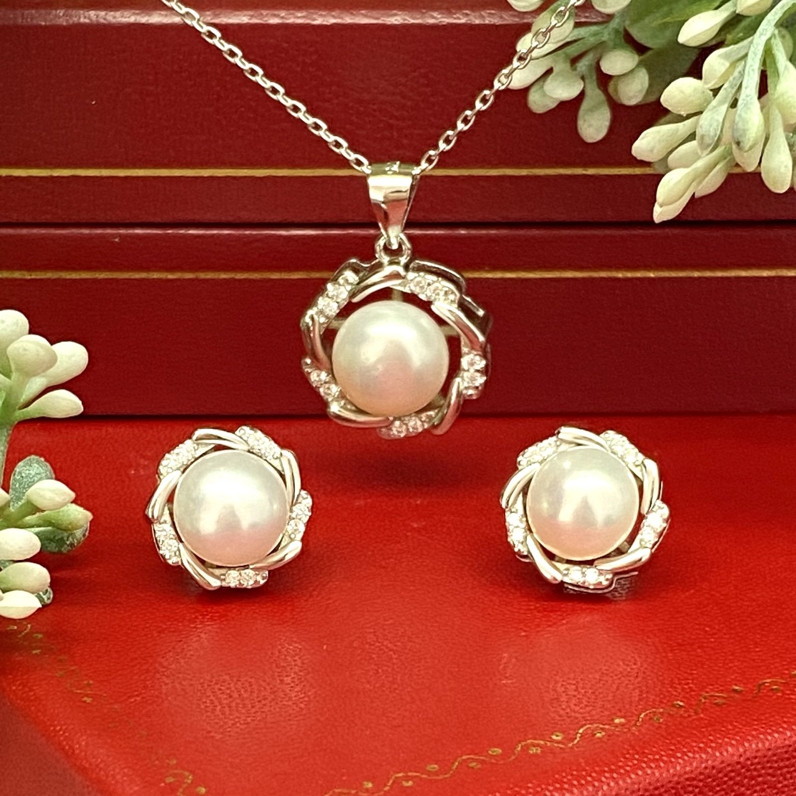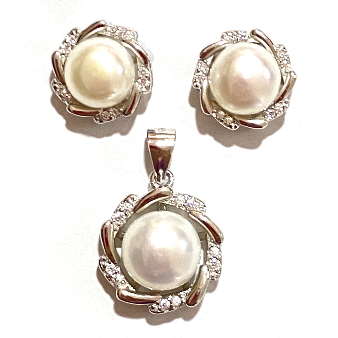 Juego de Perlas Cultivadas y Zirconias Cúbicas (no incluye cadena).