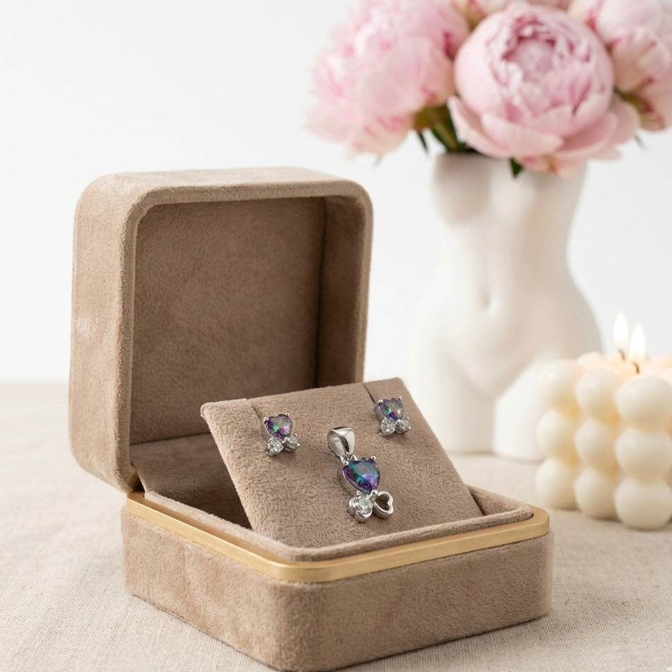 Un juego de plata 925 hermoso y versátil, perfecto para cada ocasión. Su diseño delicado resalta la elegancia natural y combina fácilmente con cualquier estilo, desde lo casual hasta lo más sofisticado.