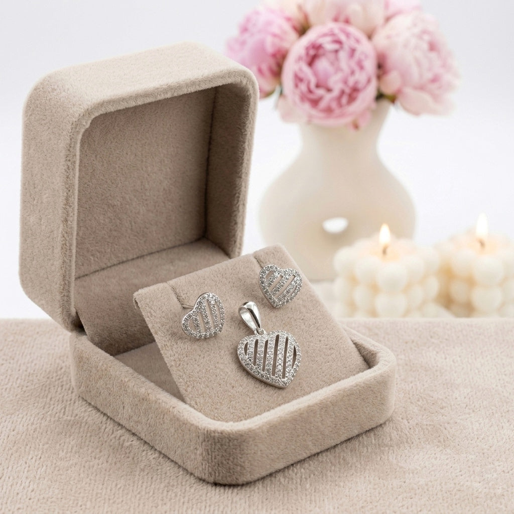Un juego de plata 925 hermoso y versátil, perfecto para cada ocasión. Su diseño delicado resalta la elegancia natural y combina fácilmente con cualquier estilo, desde lo casual hasta lo más sofisticado.