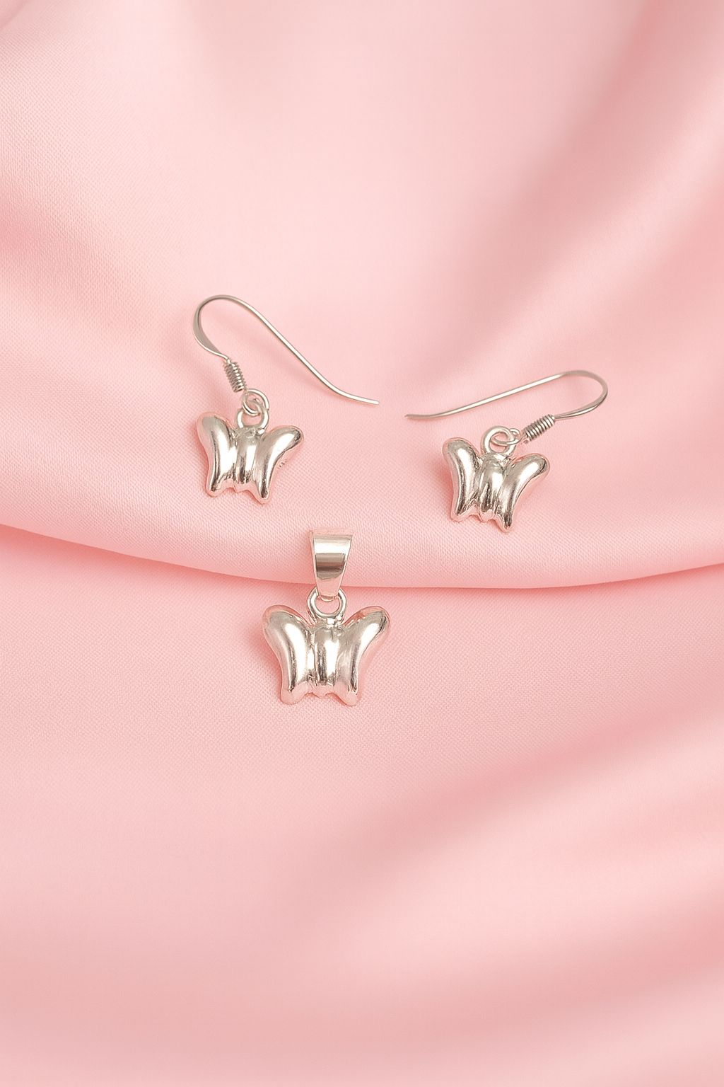El Juego de Plata es una pieza de joyería impresionante que te hará sentir como una diosa. El dije de mariposa de plata tiene un diseño espectacular .