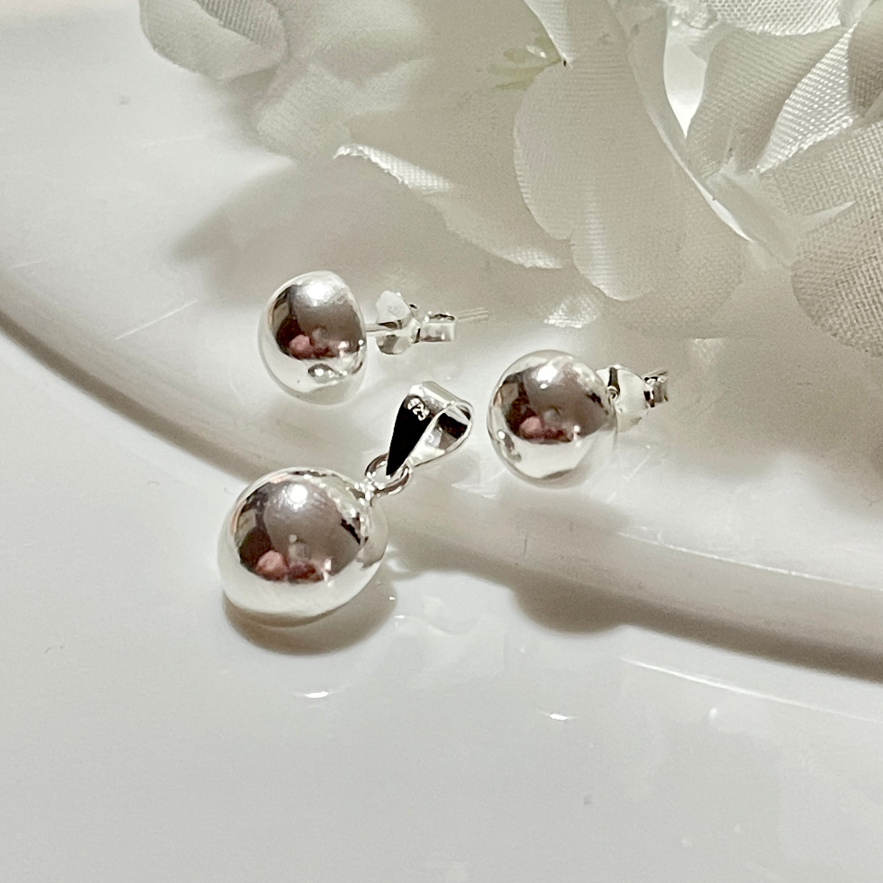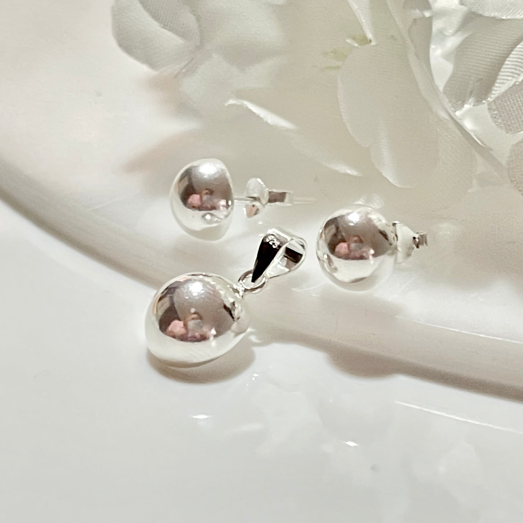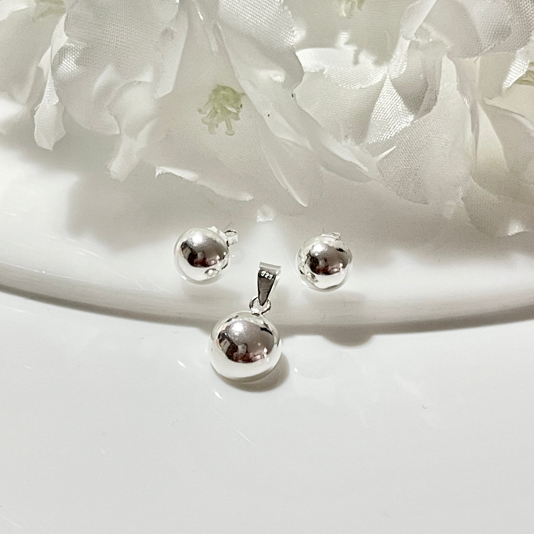 Haz una declaración con este impresionante conjunto de plata. Los aretes y el colgante son impresionantemente hermosos, el diseño de medía bola liso es llamativo y regio. Los aretes miden 8mm y el colgante 10mm. Tanto si te vistes para una ocasión especial como si simplemente acentúas tu estilo diario, este conjunto de plata seguro que te impresionará.