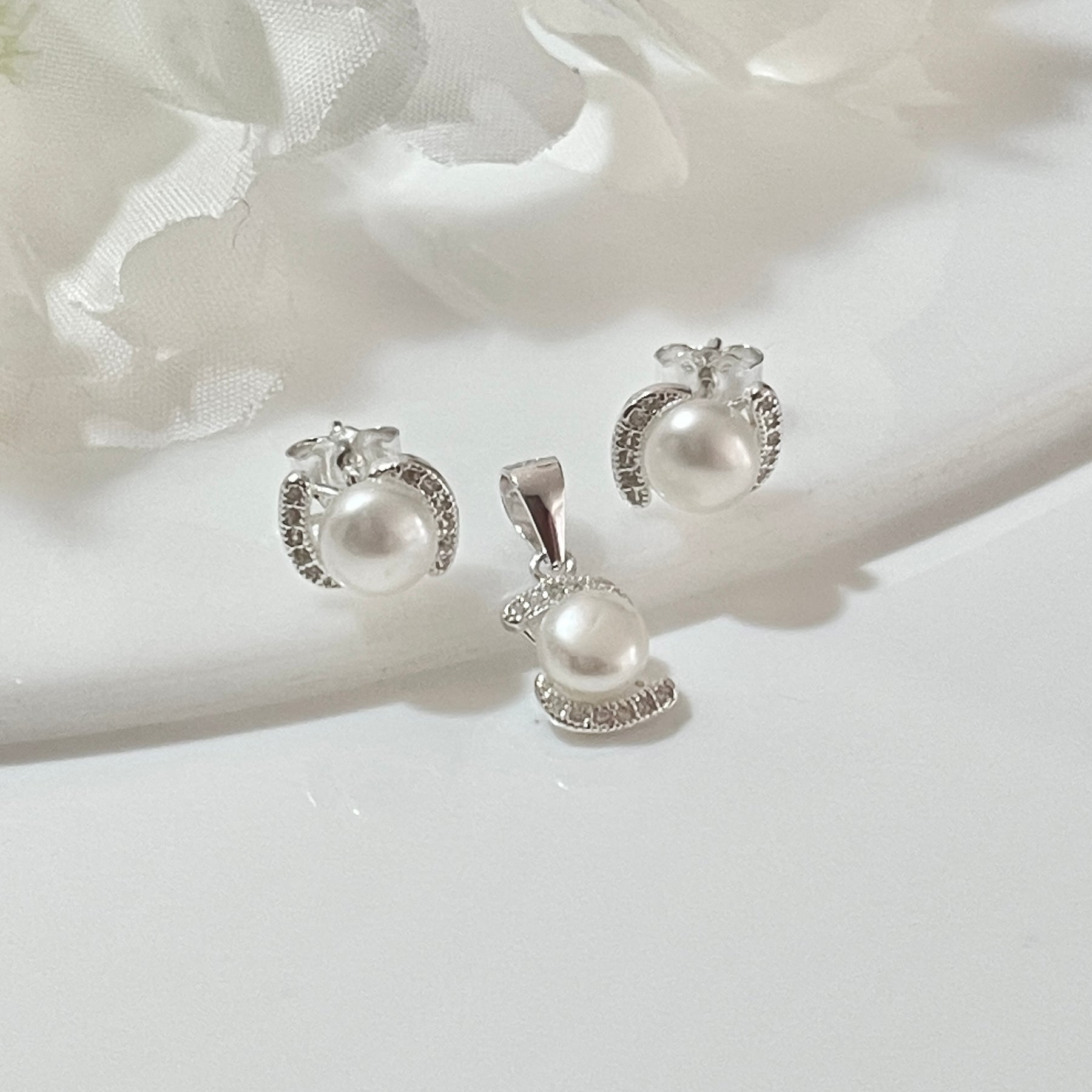 Juego Plata Perlas Bordes 💋 | Nicola Joyería