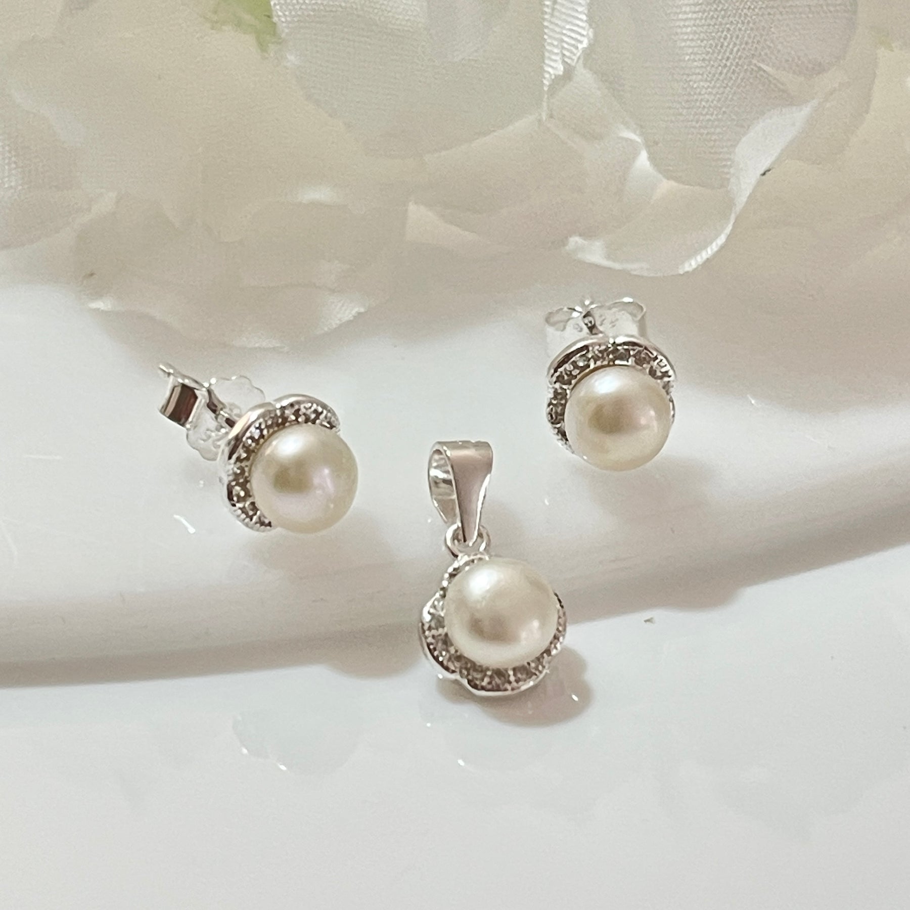 Haz una declaración con este impresionante conjunto de plata. Los aretes y el colgante son impresionantemente hermosos, el diseño perlas cultivadas flor cuatro pétalos es llamativo y regio. Los aretes miden 12mm y el colgante 12mm. Tanto si te vistes para una ocasión especial como si simplemente acentúas tu estilo diario, este conjunto de plata seguro que te impresionará.
