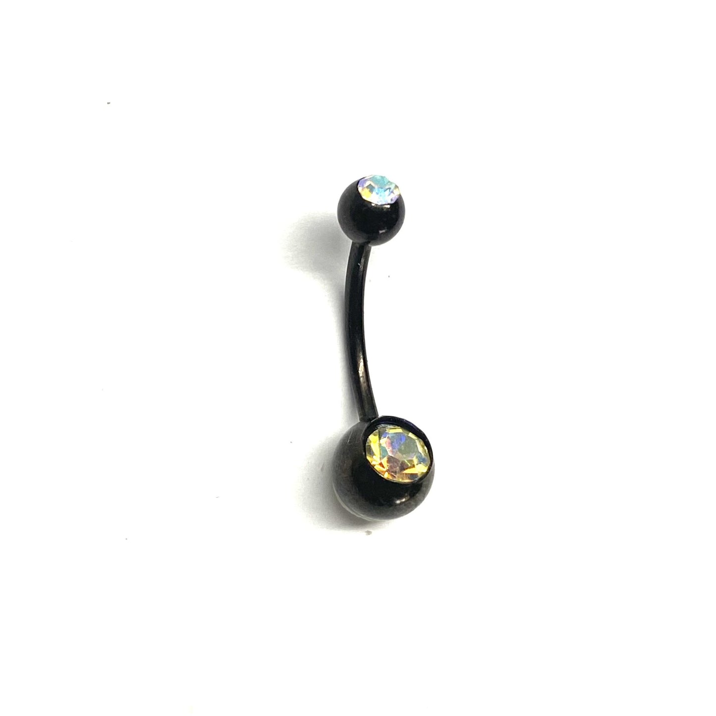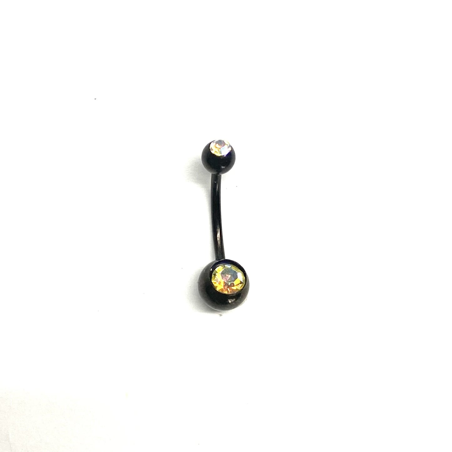 Arete negro pequeño con piedras tornasol para el ombligo.
