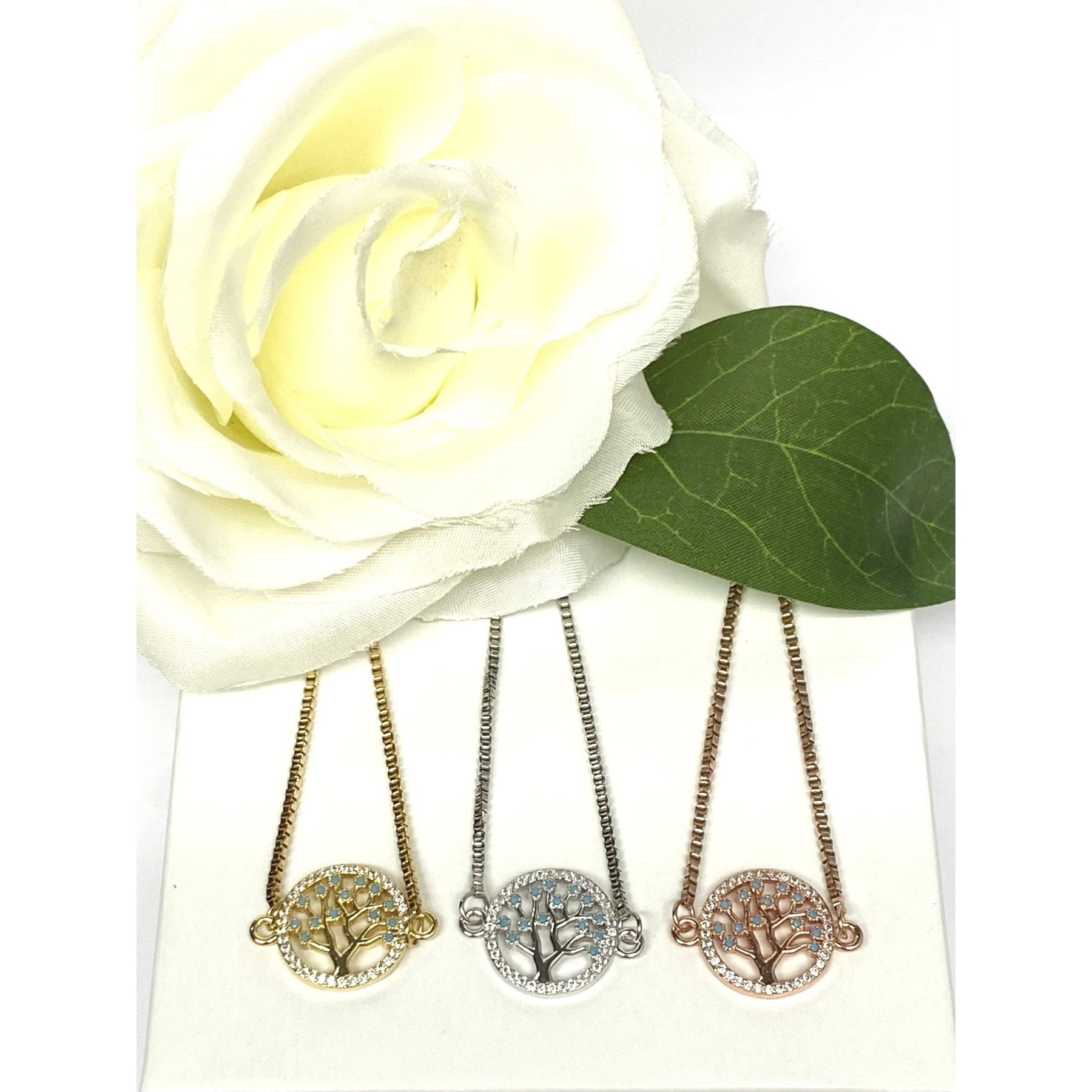 ¿Buscas algo especial y único? ¡Echa un vistazo a nuestra increíble pulsera del árbol de la vida! Esta magnífica pulsera tiene un colgante de aleación metálica plateada con forma de árbol, con deslumbrantes piedras de circonita blanca en los laterales.