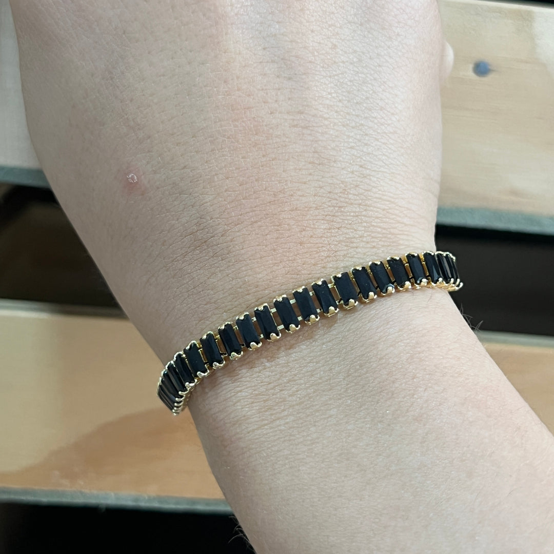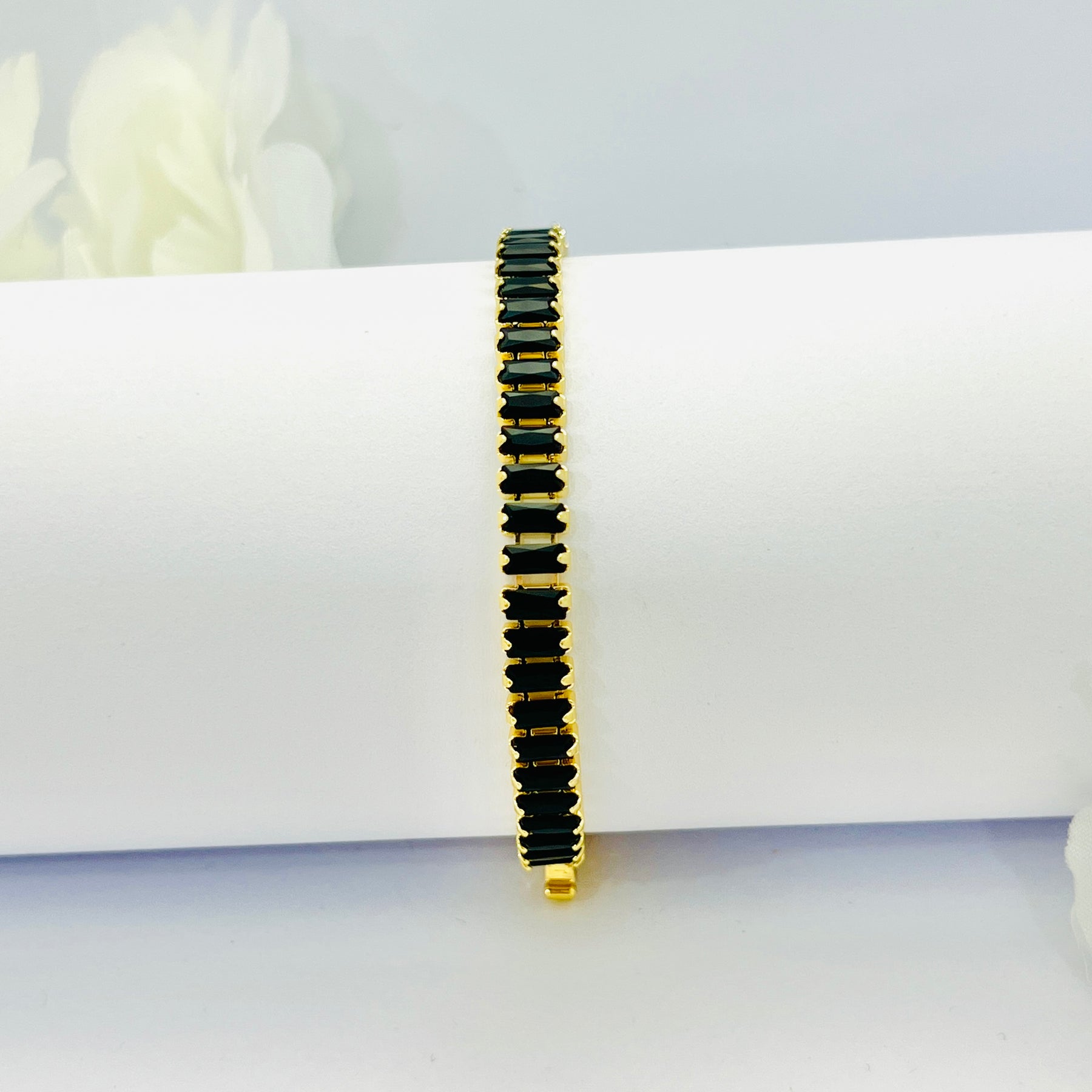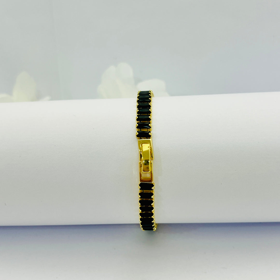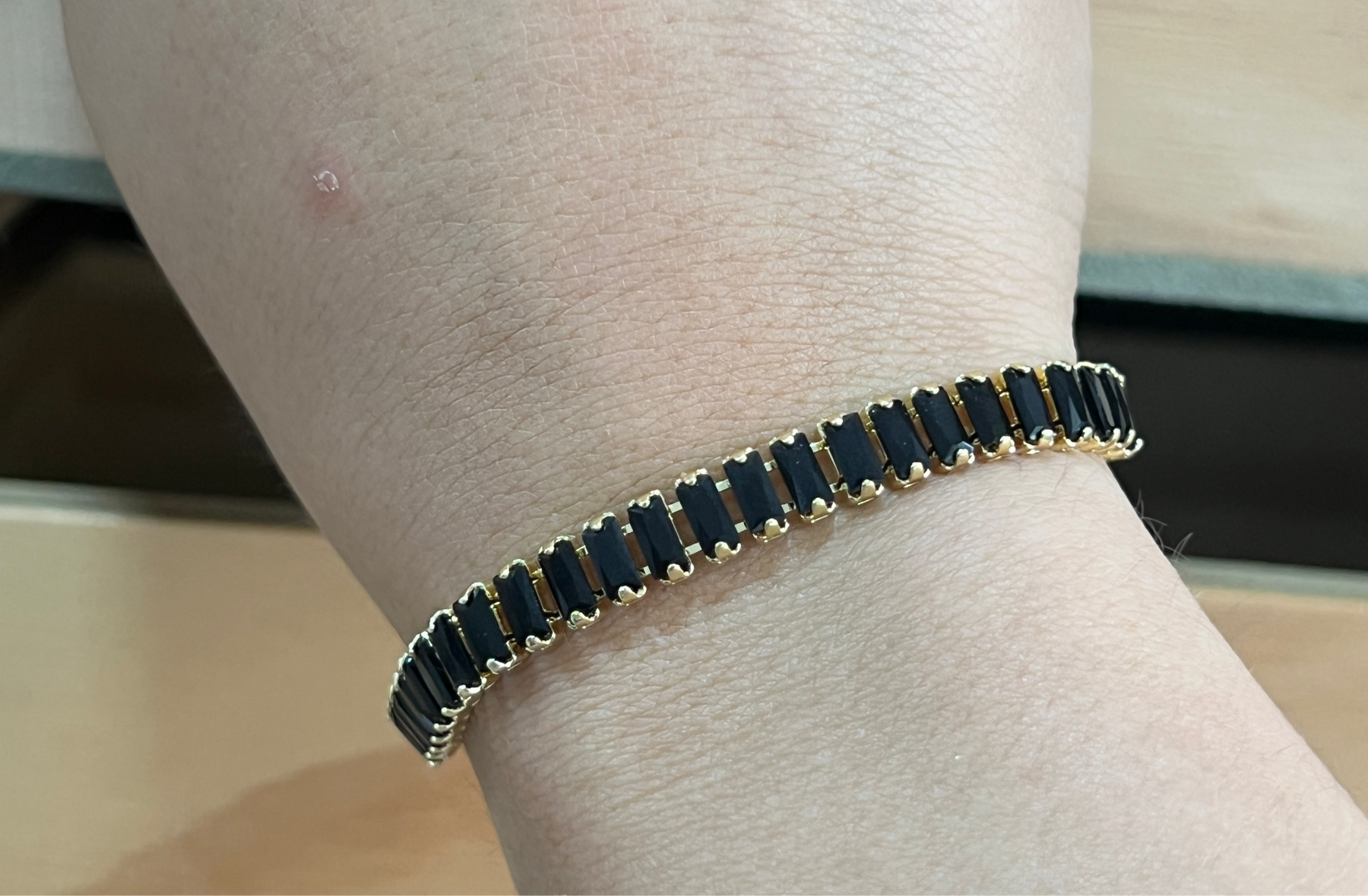 Nuestra "Tennis Bagguettes" está elaborada con una aleación de metales enchapada dorada.