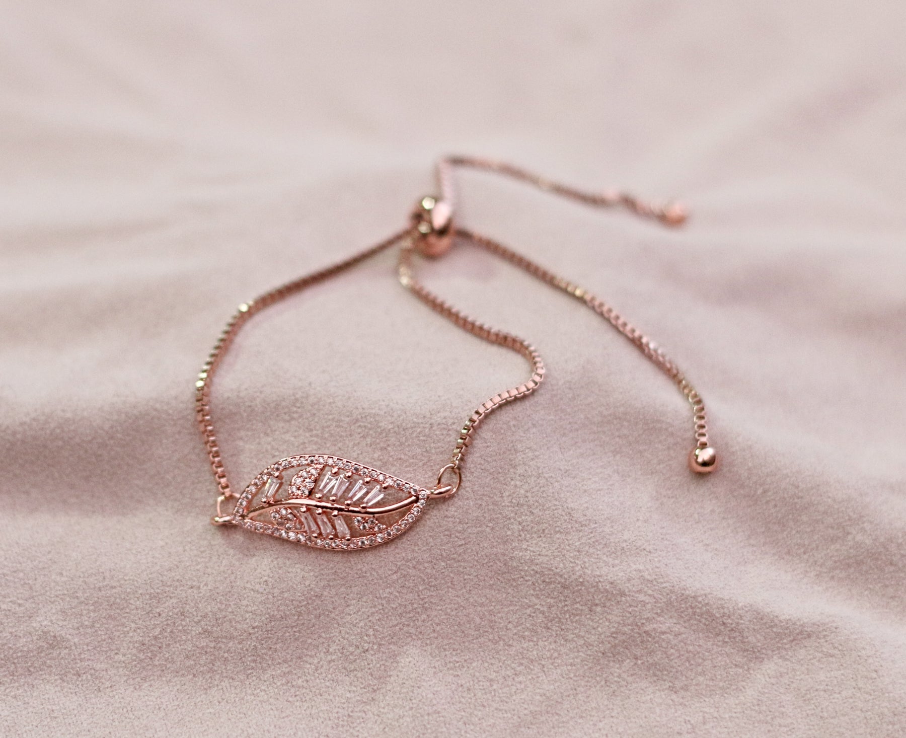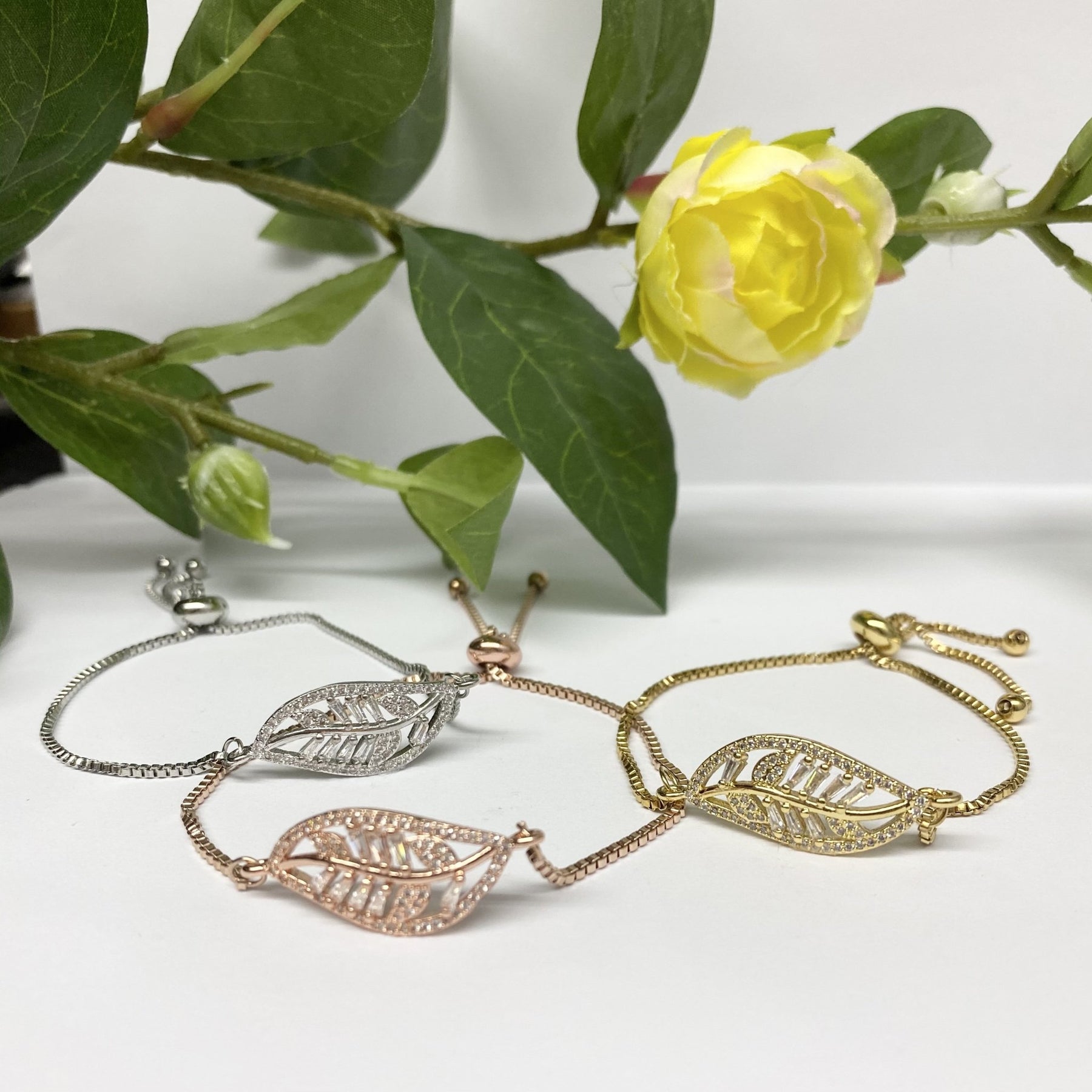 Te presentamos nuestra pulsera de hoja grande, única en su género. Esta hermosa pieza es ajustable para que se adapte a cualquier mano, y cuenta con un impresionante dije en forma de hoja grande. La hoja está repleta de brillantes piedras de circonita redondas y rectangulares, para un aspecto realmente llamativo. Tanto si te disfrazas para una ocasión especial como si simplemente añades un toque de glamour a tu estilo diario, esta pulsera seguro que dará que hablar. Los amantes de la naturaleza adorarán su diseño orgánico, y todos apreciarán su belleza única. ¡Haz tu pedido ahora y empieza a llamar la atención!