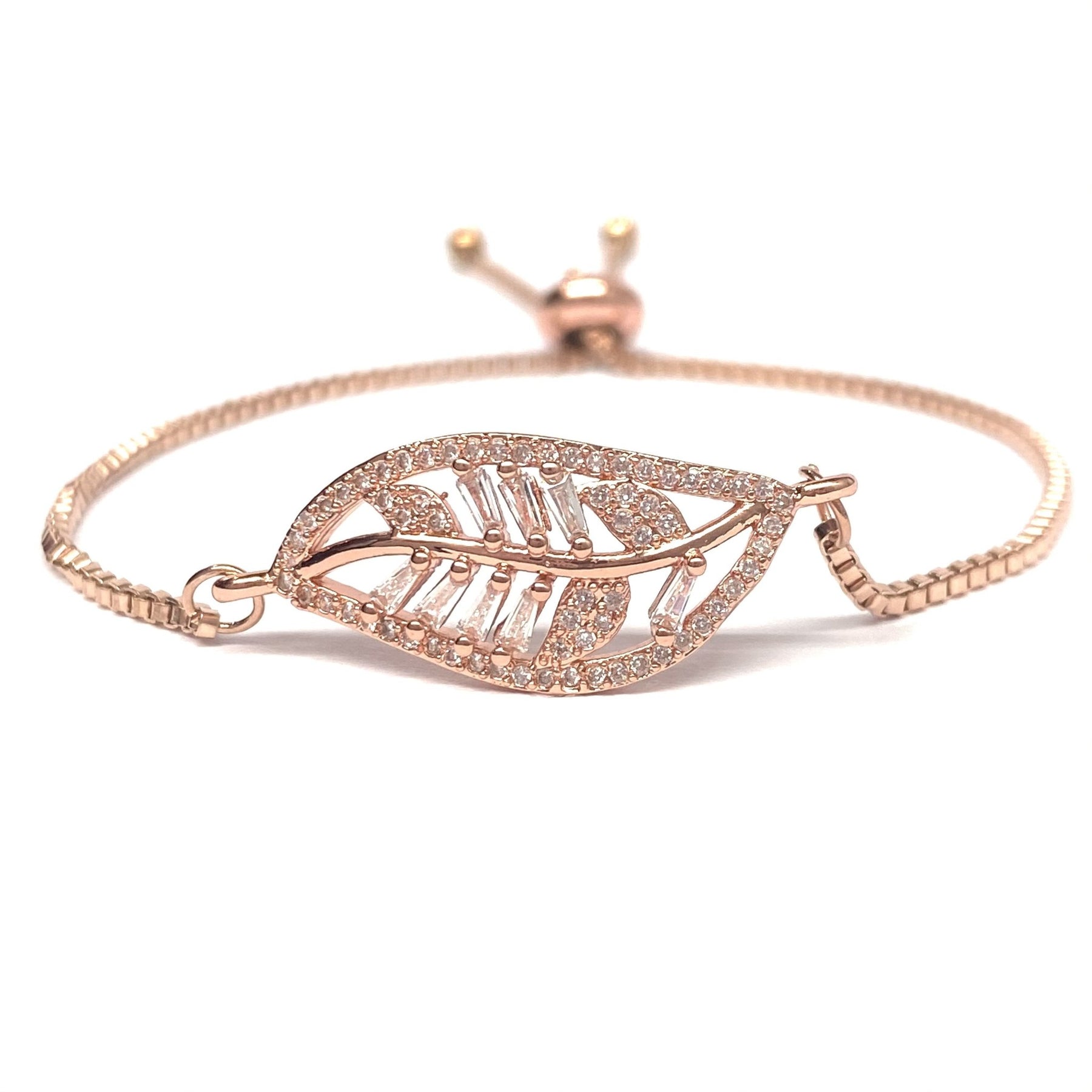 Pulsera Acero 🍃 Hoja Grande Oro Rosa | Nicola Joyería