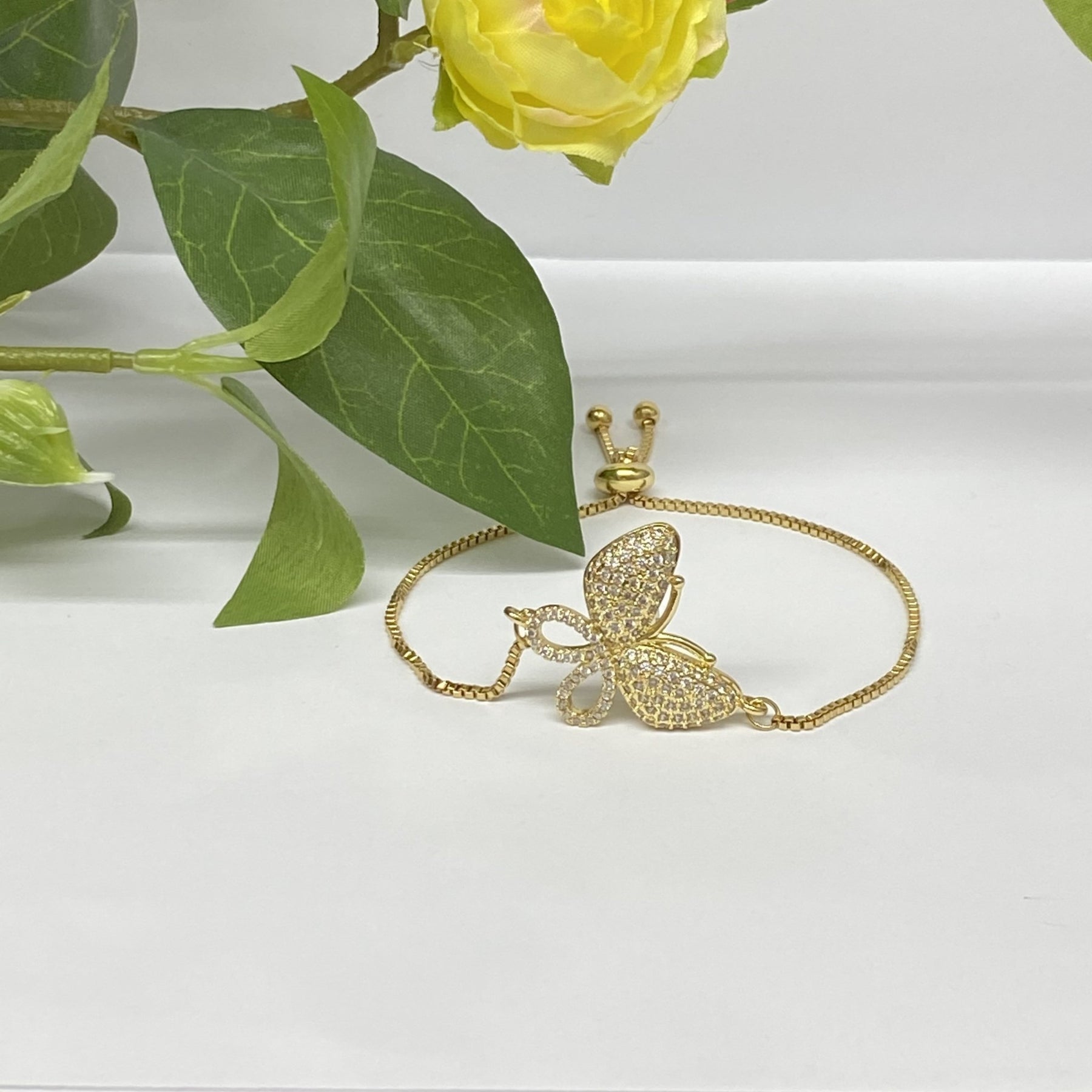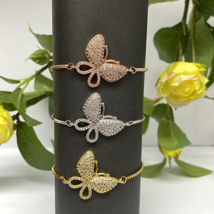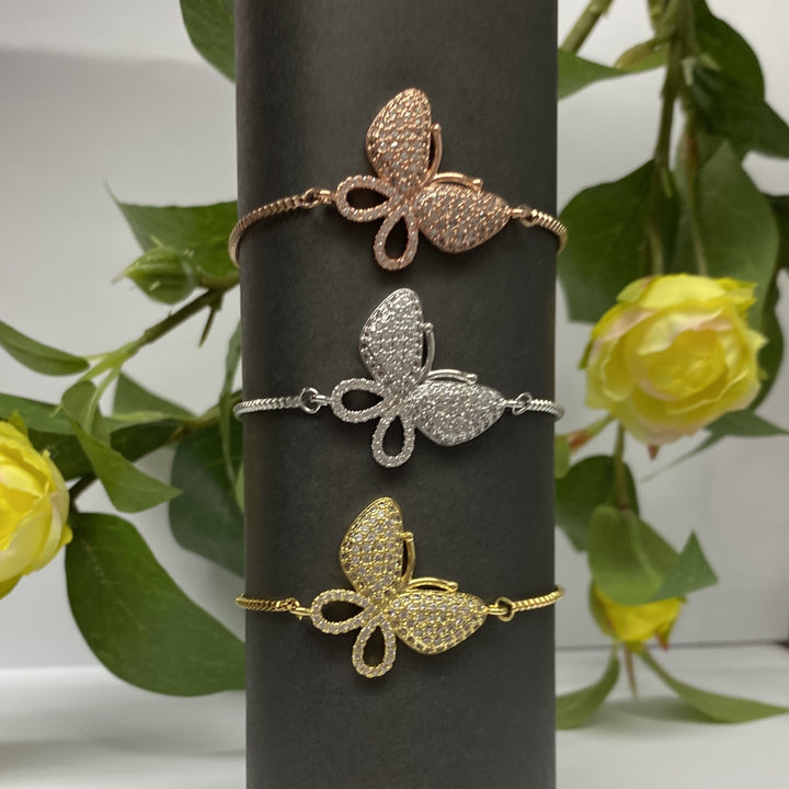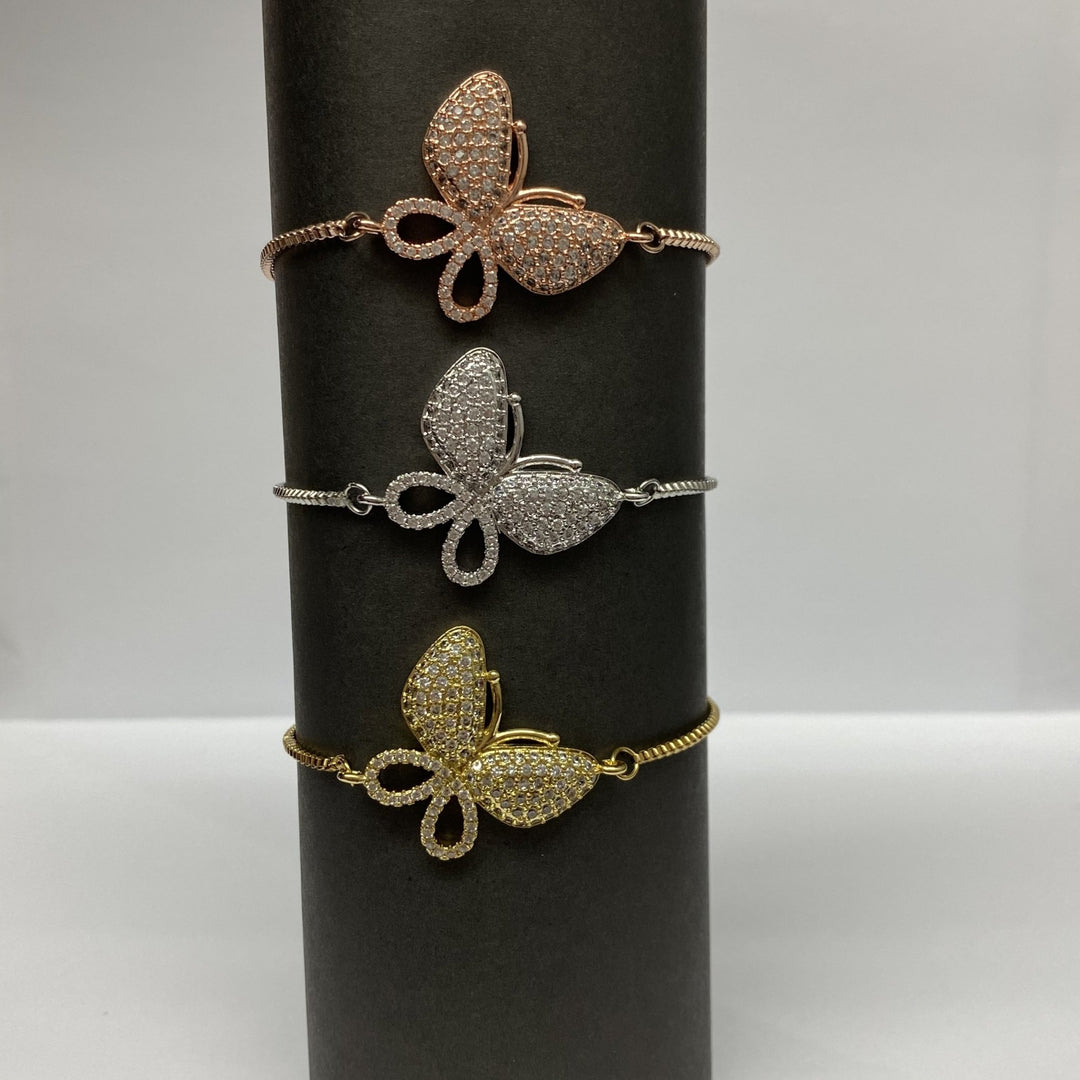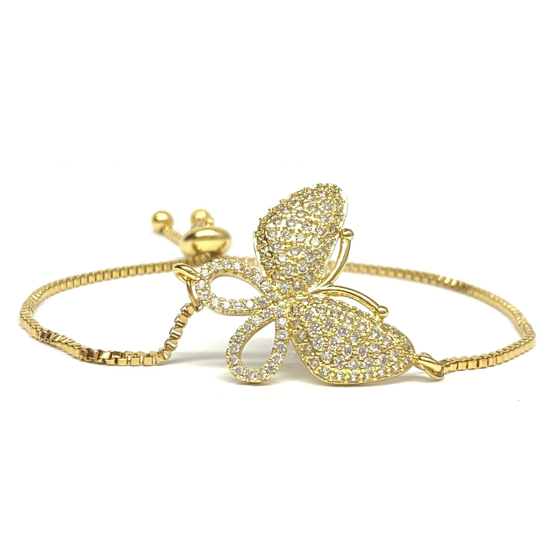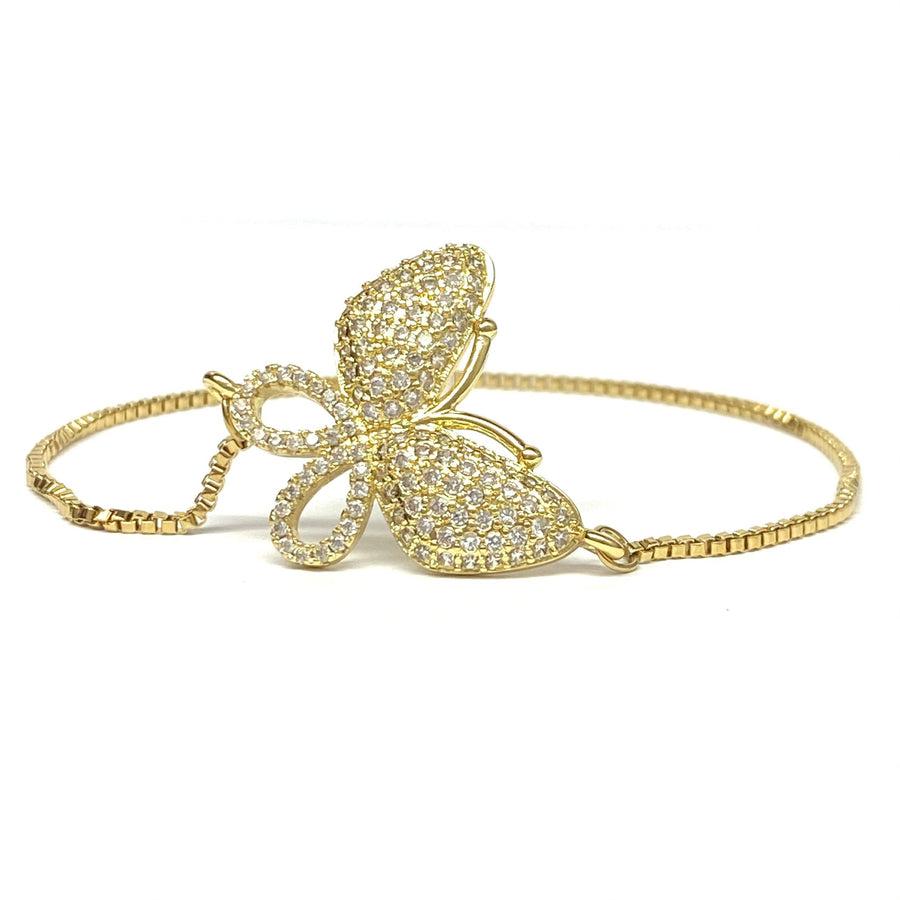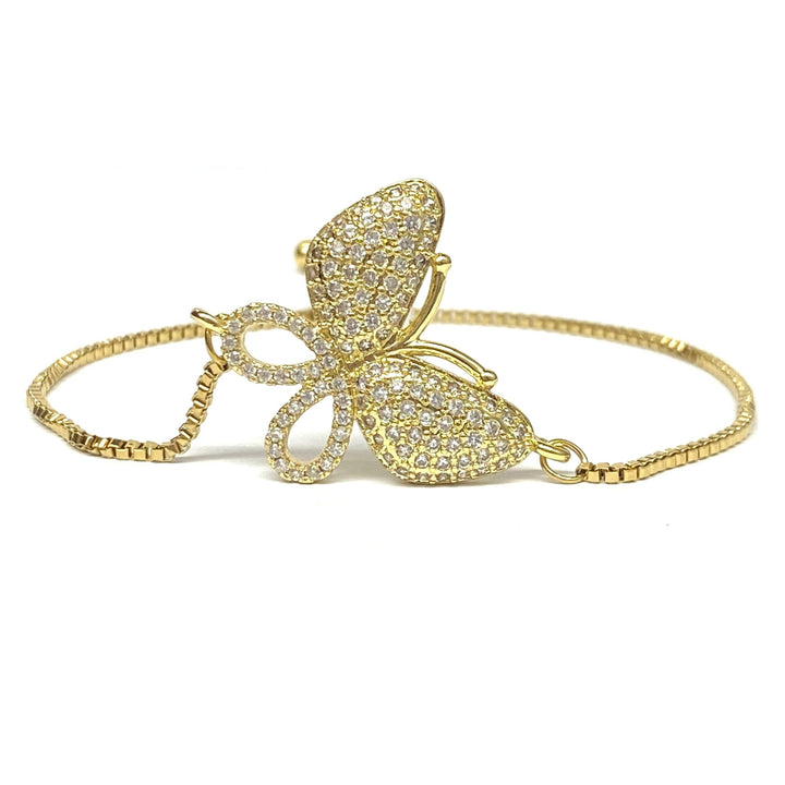 Pulsera Deslizante Ajustable con Mariposas Grande de Acero Dorado