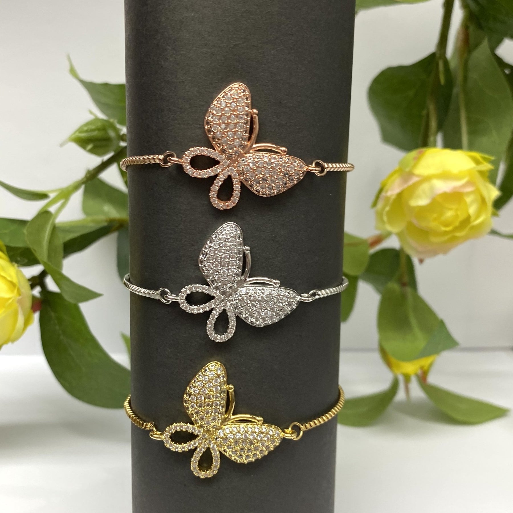 ¿No puedes decidir si eres más de oruga o de mariposa? ¿O tal vez te gusta mucho jugar con los bichos? Sea cual sea tu estilo, nuestra pulsera de mariposa grande seguro que te gustará. Esta pulsera deslizante ajustable puede llevarse en cualquier tamaño de mano, y presenta una gran mariposa de 24 mm llena de brillantes circonitas blancas. El accesorio perfecto para cualquier atuendo, esta pulsera seguro que atraerá todas las miradas. Así que acércate a nuestra tienda y hazte con una hoy mismo