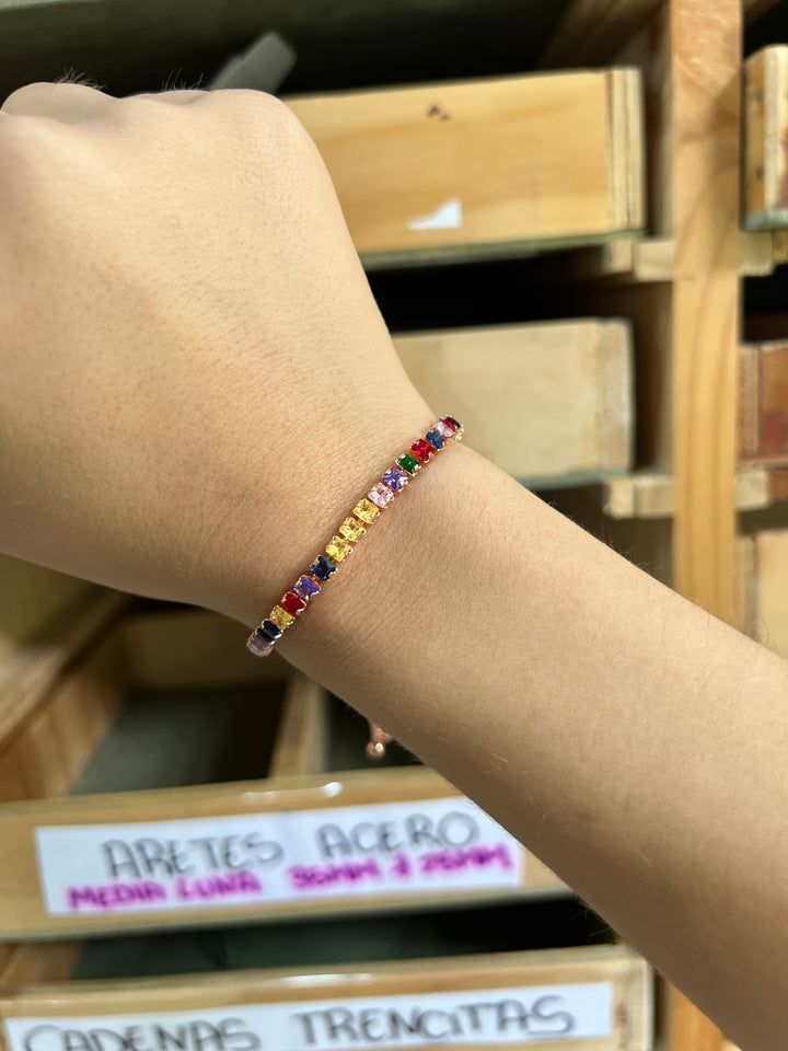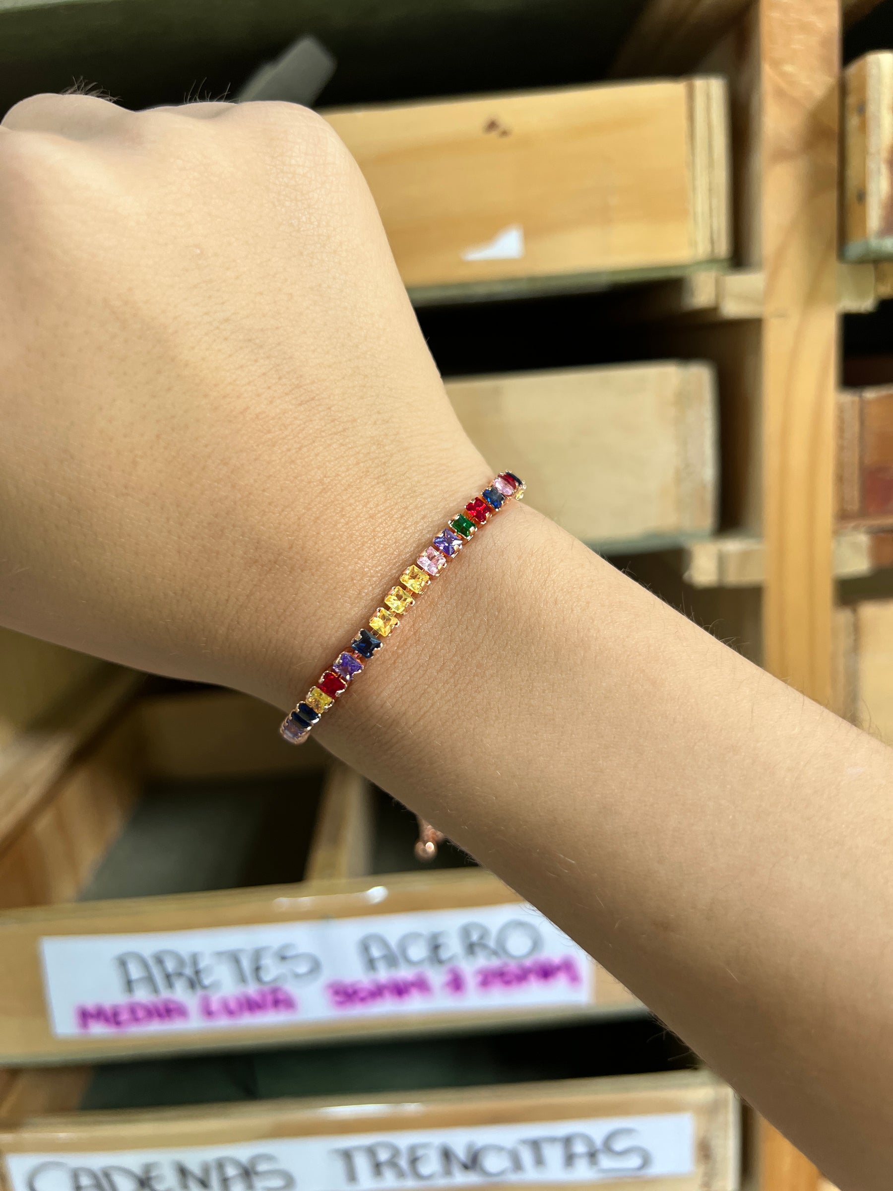 Pulsera Acero 🌈Multicolor Tennis Oro Rosa