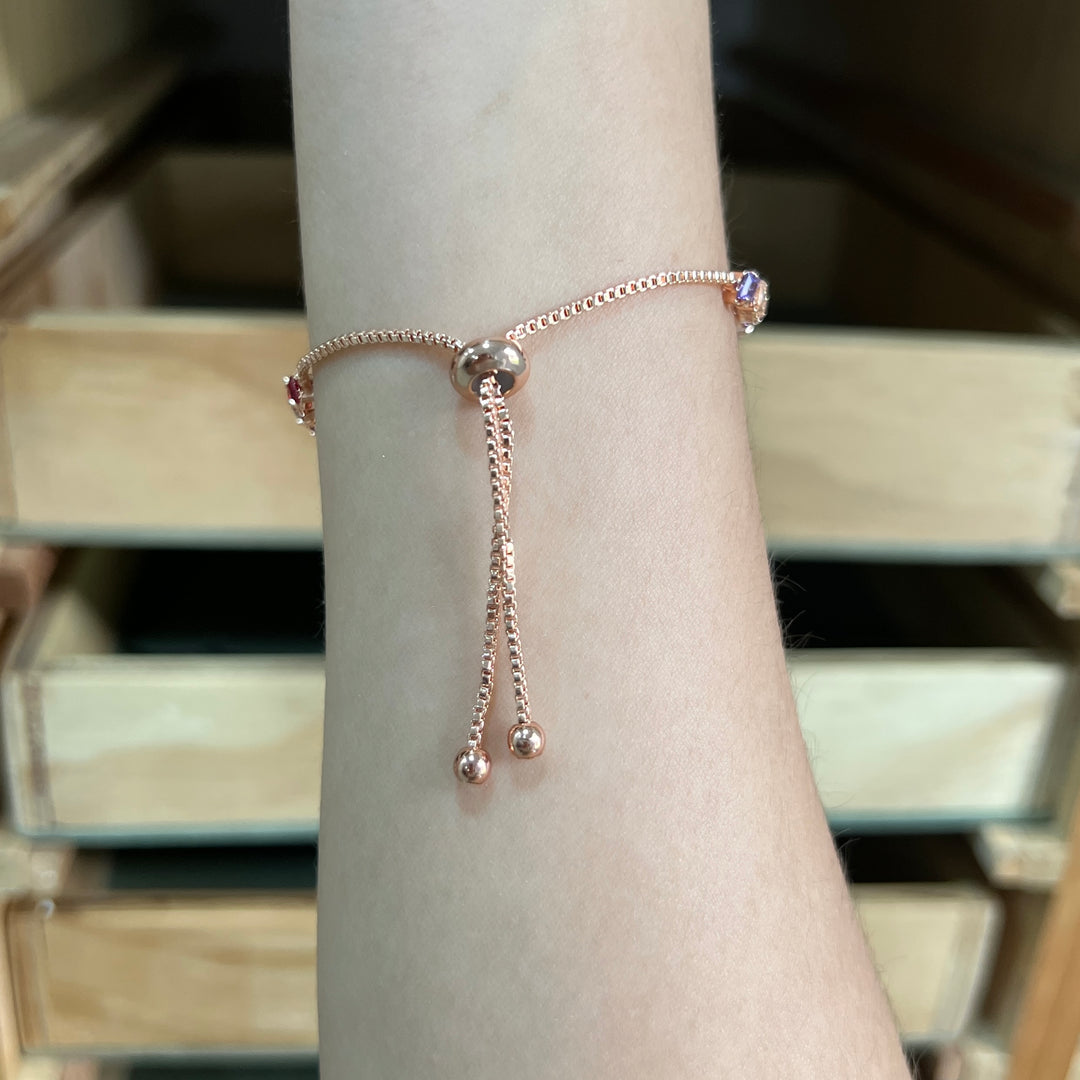 Nuestra "Tennis Bracelet" está elaborada con una aleación de metales enchapada en oro rosa.