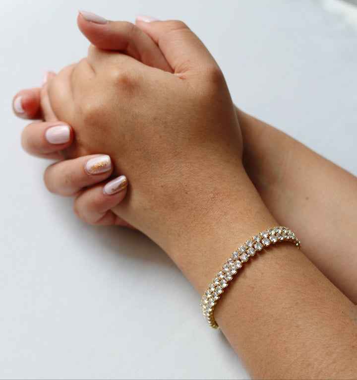 Pulsera Acero 💎💎 Tennis Doble Dorada | Nicola Joyería