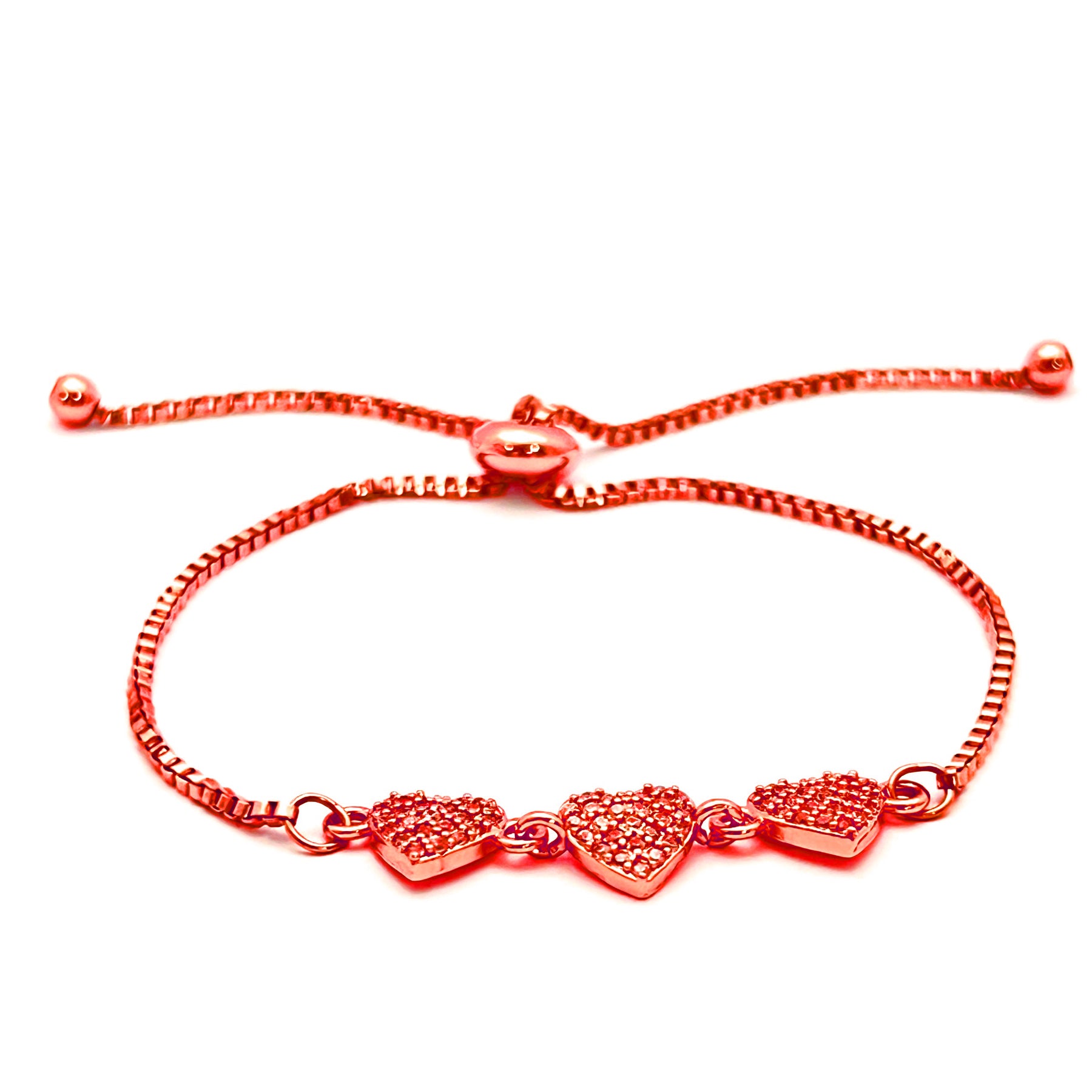¿Buscas una forma de demostrar a tu pareja lo mucho que te importa? No busques más que esta preciosa pulsera de corazón. Fabricada con una aleación de metal, cuenta con tres brillantes dijes de corazón en oro rosa que seguro que deslumbrará. Además, es ajustable para adaptarse a cualquier tamaño de mano, lo que la convierte en el regalo perfecto para cualquier persona.